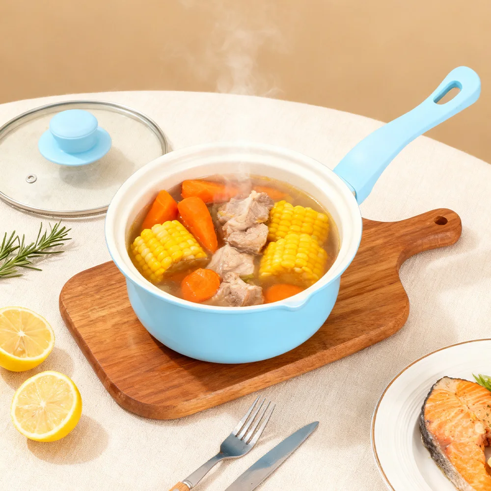 2.Effortless Non-Stick Coating: Featuring premium milk pot maifan stone frying pan coating, enjoy superb non-stick performance. Effortlessly slide foods out, minimizing waste while saving time on cleaning-simply wipe with paper and rinse.