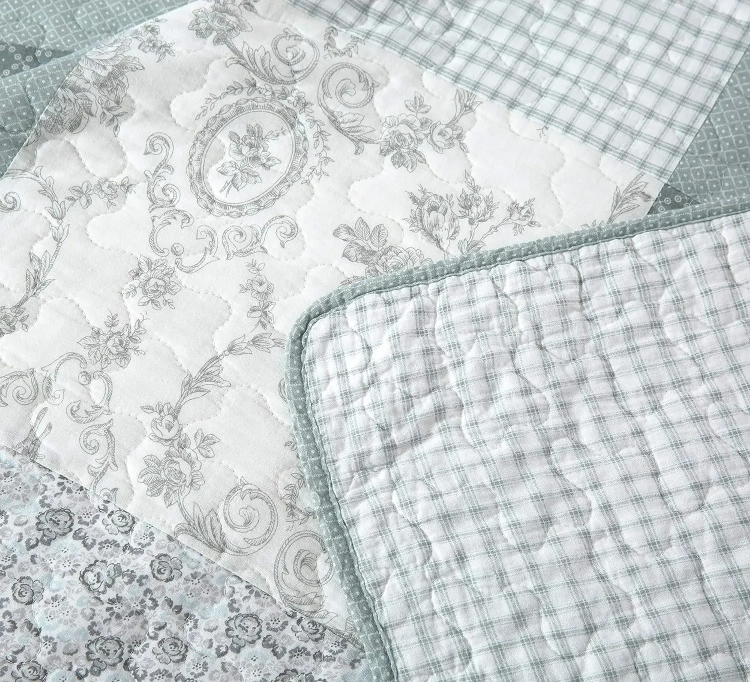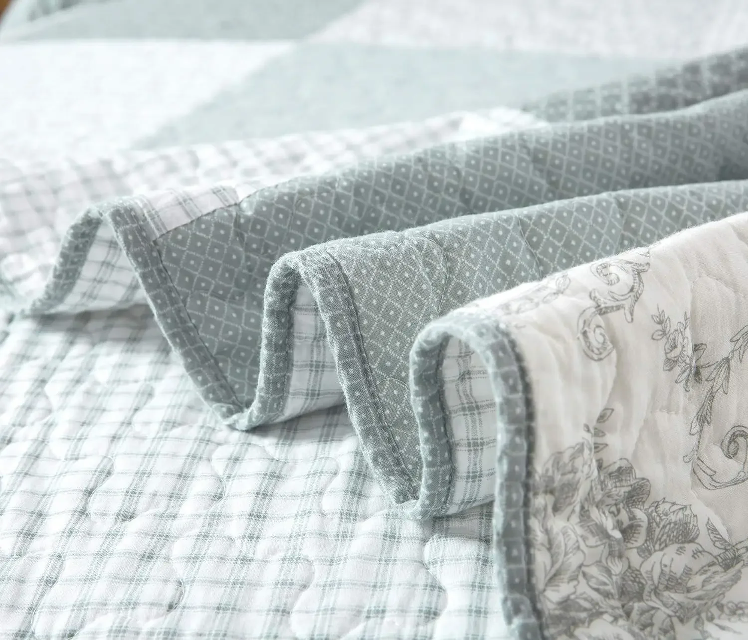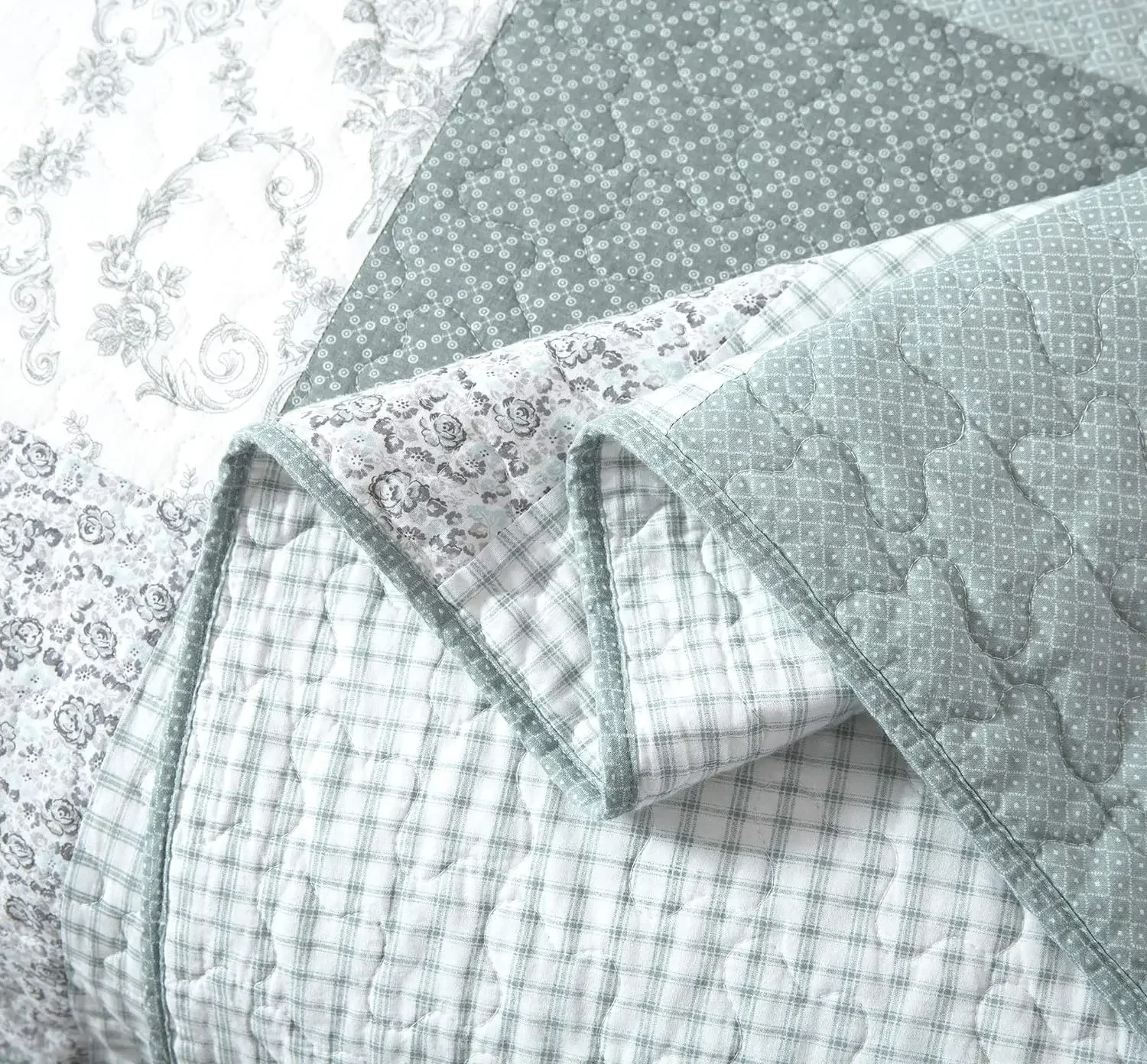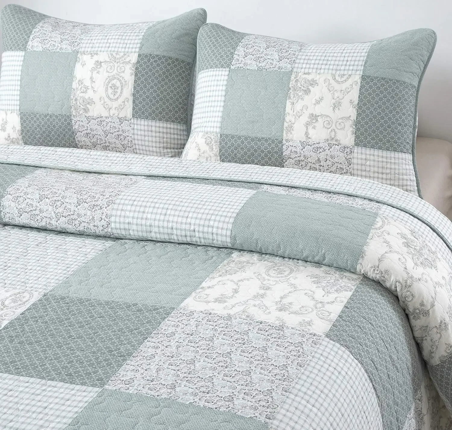 - NEUTRAL DESIGN FOR ALL DECOR SCHEMES: This gorgeous bedding set would look fabulous in any room. With its traditional patchwork style and neutral shades of grey and sage green, it's guaranteed to brighten every space, whether your décor style is traditional or modern.