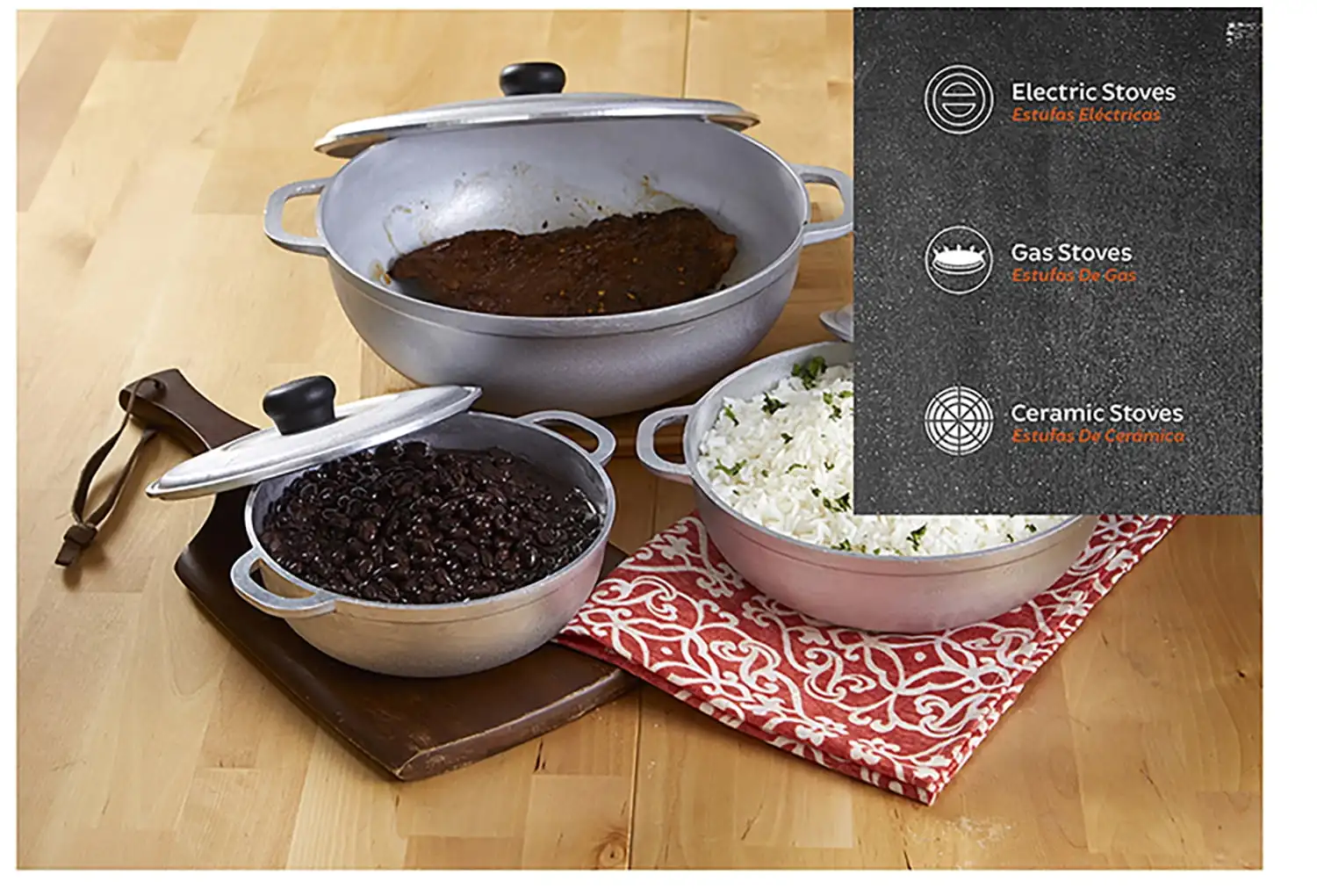 - Traditional Design-Set Includes 3 Different Sized Calderos: 1.4-Quart (18 CM), 2.3-Quart (22 CM), 4.9-Quart (28 CM)