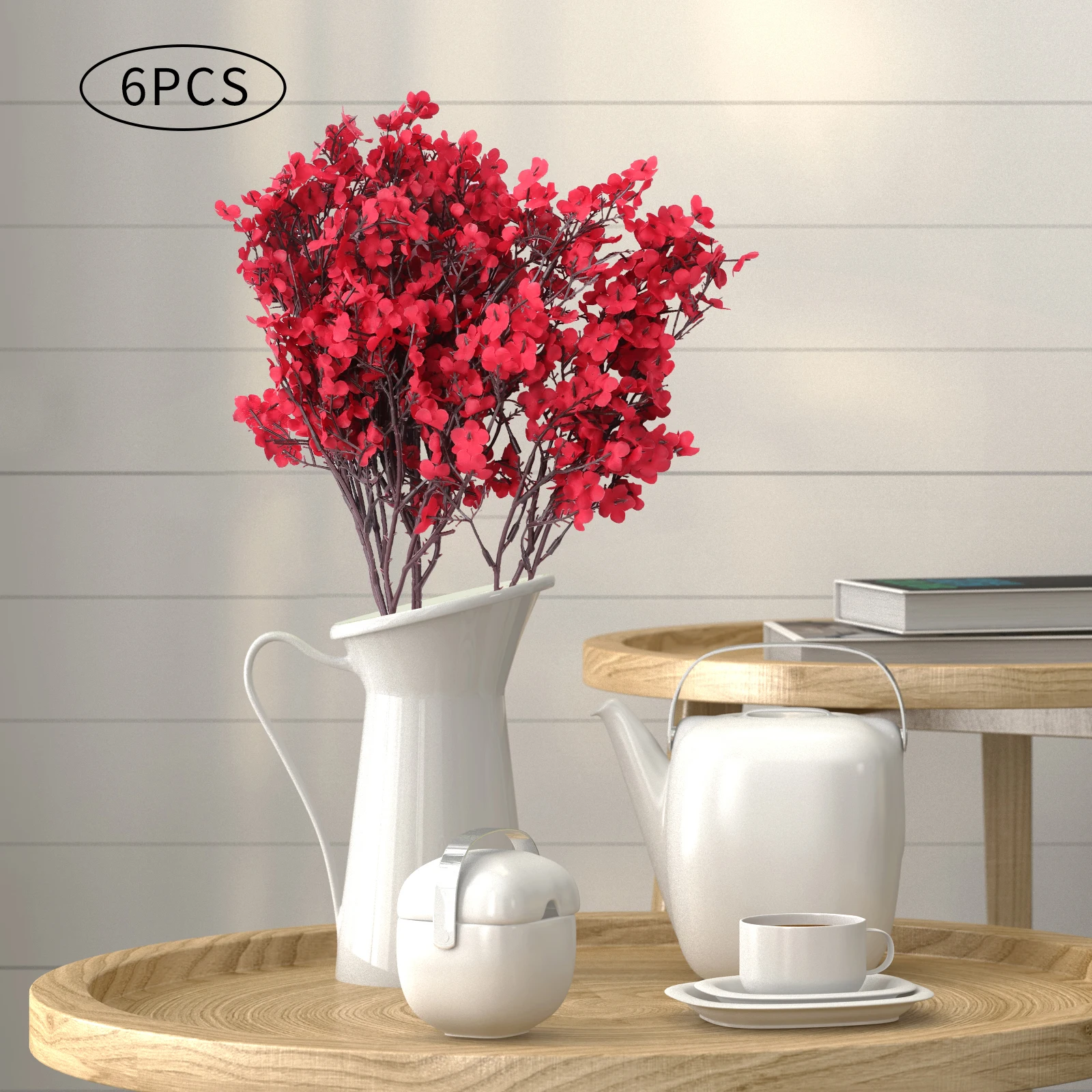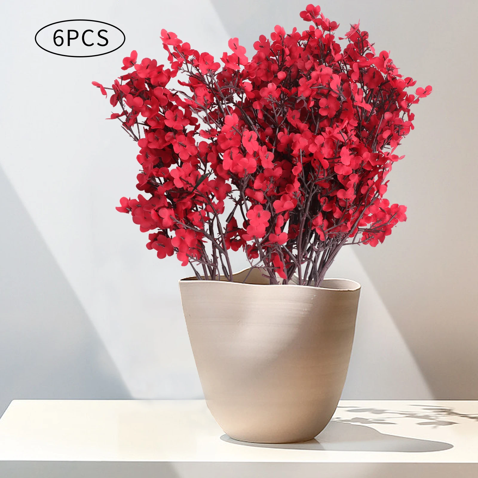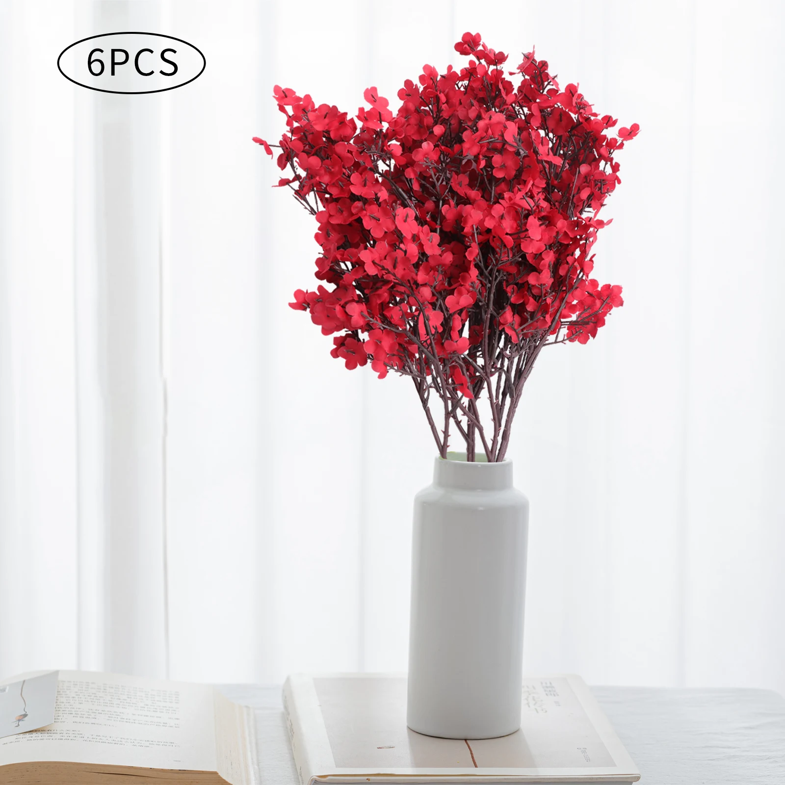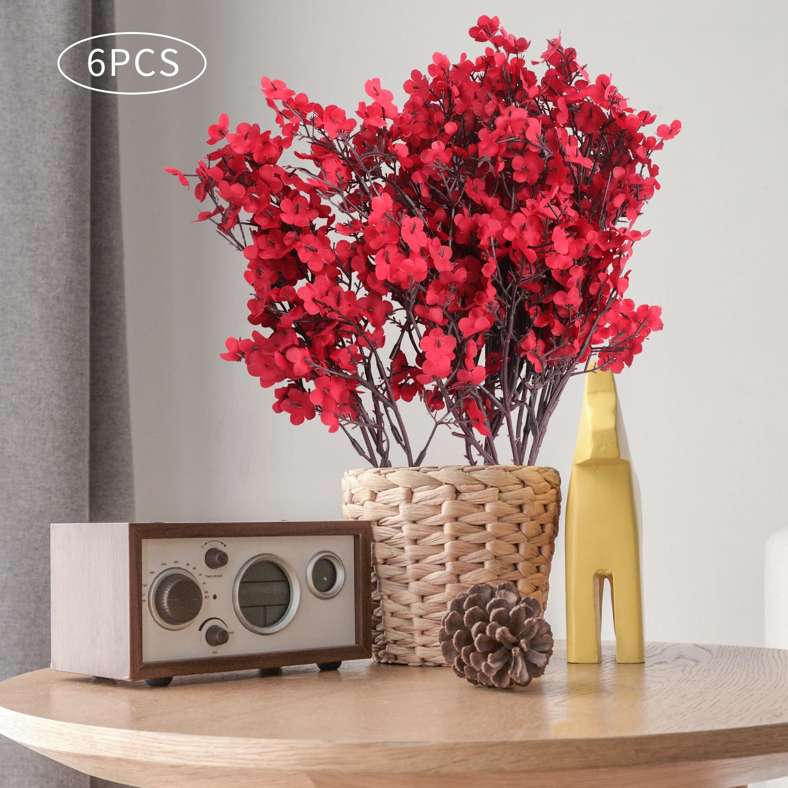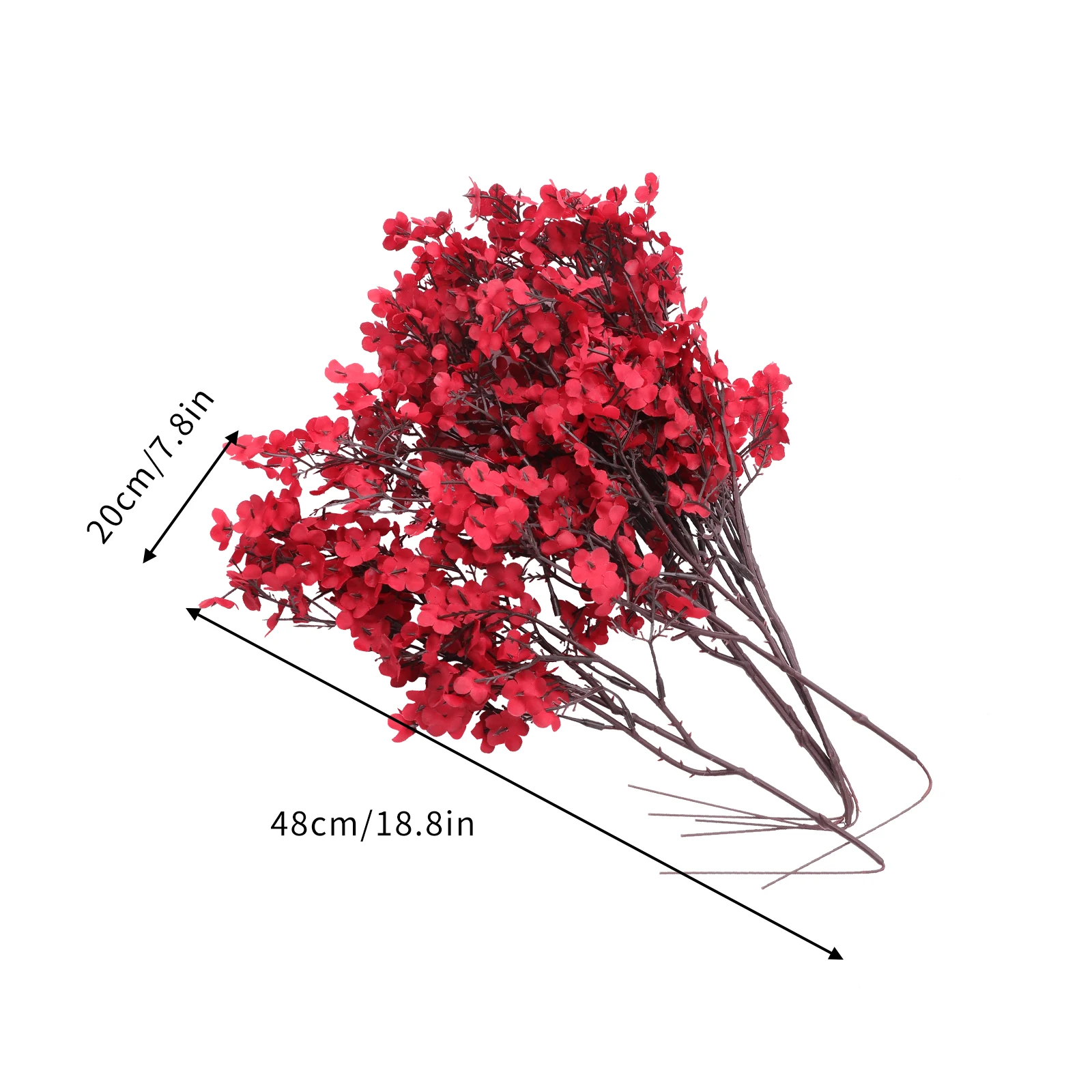 When a patch of red gypsophila flowers blends with the cheerful sunlight, it can instantly warm up an entire space and banish the cold and boredom. Made of eco-friendly silk fabric and durable plastic, these artificial gypsophila flowers do not require regular watering, trimming, or maintenance. These gypsophila flowers will give you a realistic image and bring you the feeling of being in a real flower. You can use them as decorations for birthday parties, weddings, Christmas, etc.