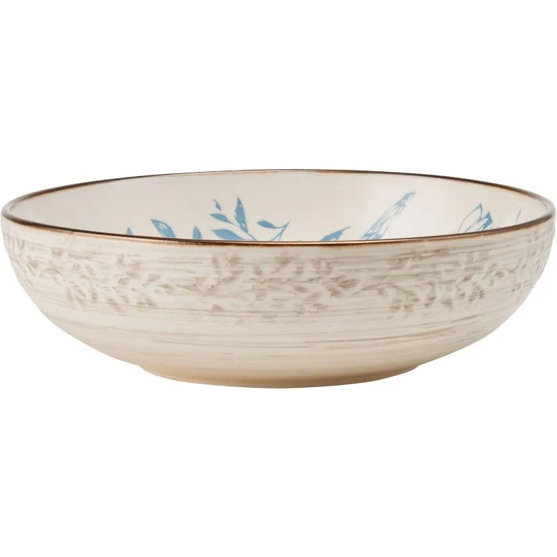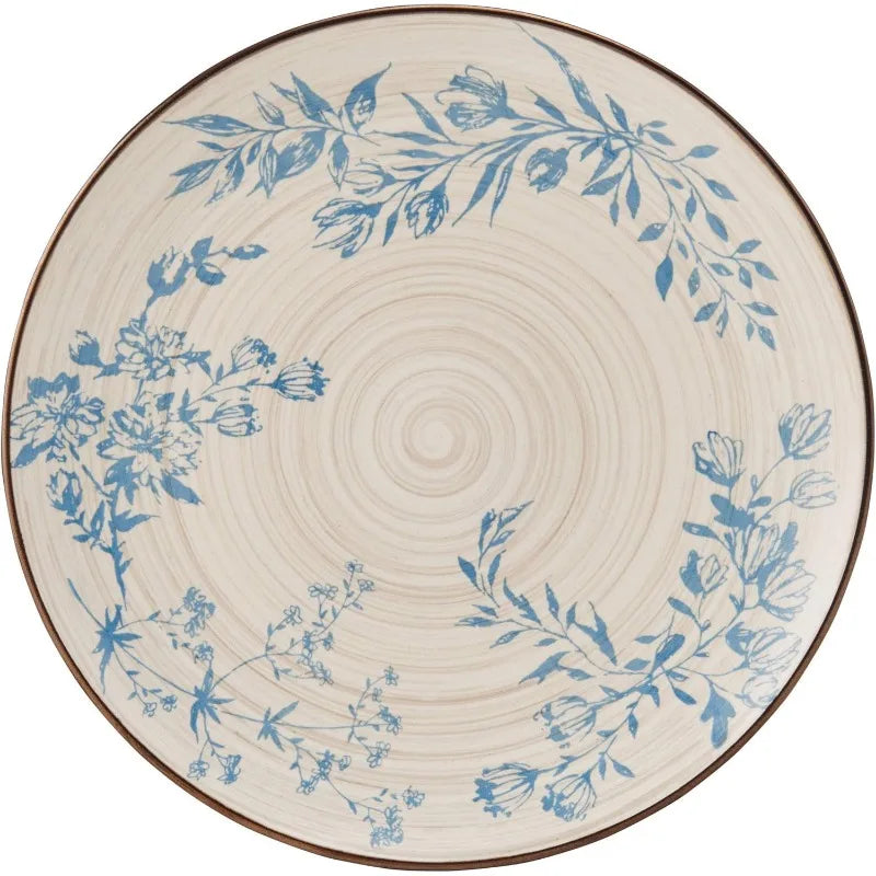 - CLASSIC MEETS HANDCRAFTED: gray antiqued pieces with a striking swirl design are adorned with a blue floral pad print pattern and framed with metallic rims