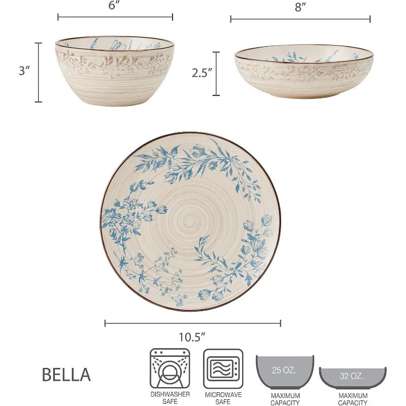 Bella 12 Piece Dinnerware Set, Service For 4, Multicolor