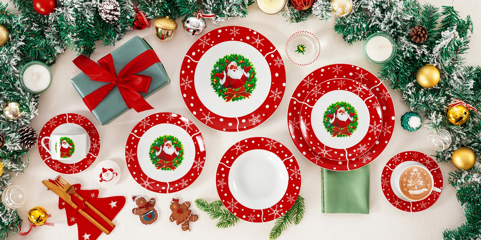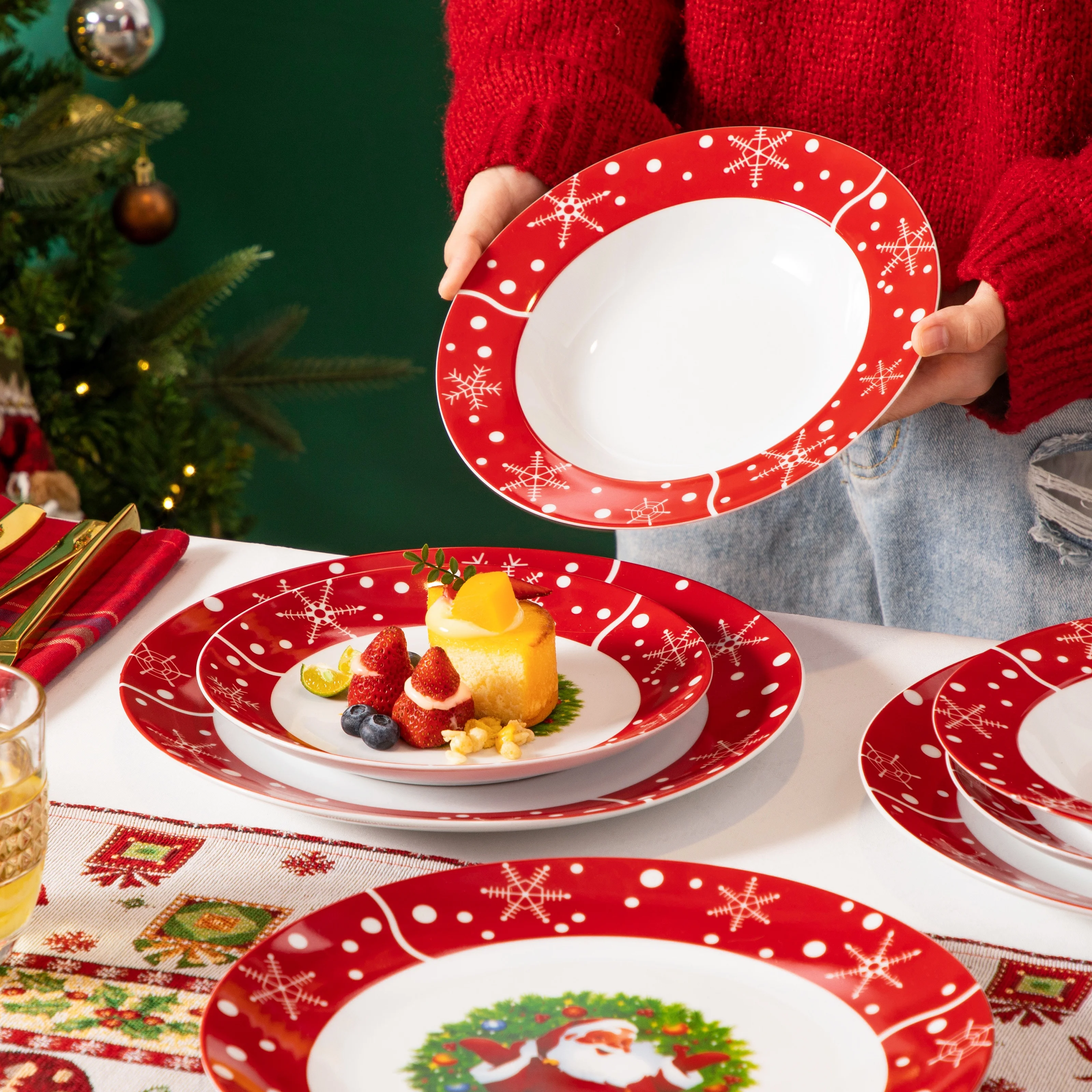 Porcelain Dinnerware Set for 4-6: 12Piece and 16Piece Set for 4、18 and 30 Piece Set for 6 perso.Christmas Plate Set for serving a family of four during the holiday season