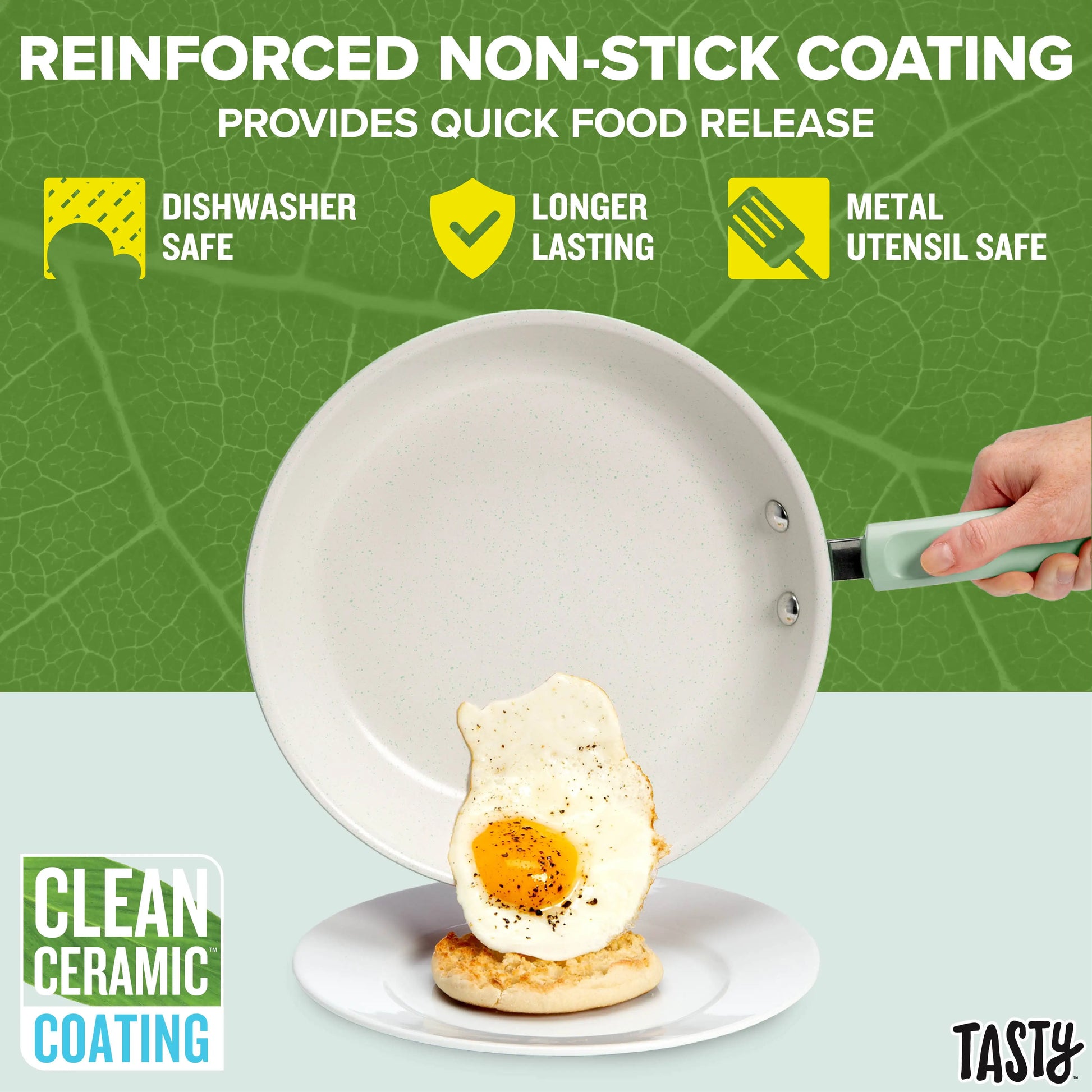 - Better, Stronger, Longer-Lasting Non-Stick: This pots and pans set features a premium, reinforced Clean Ceramic non-stick coating that allows food to easily slide out of the pan