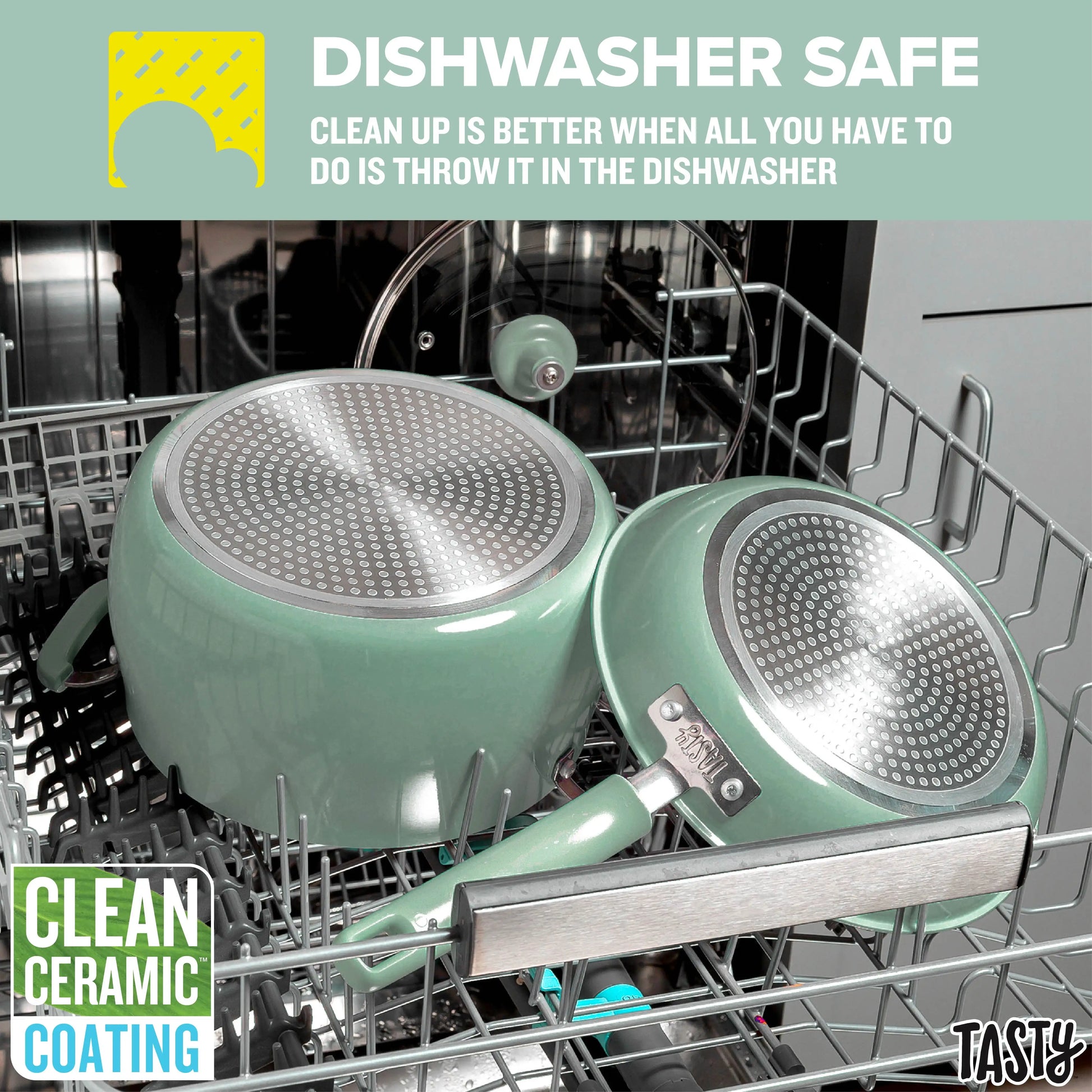 Clean Ceramic 16 Piece Non-Stick Aluminum Cookware Set, Sage Green, non stick cooking pot set