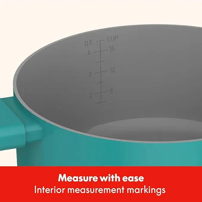 TRENDY & PRACTICAL DESIGN: Our modern, colorful pots and pans bring a stylish touch to your kitchen, while interior measurement markings, secure silicone-rimmed lids, and stay-cool comfort-grip handles add functionality to help you cook like a pro