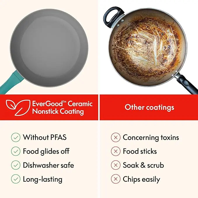 NONSTICK COATING: Cook confidently with EverGood Ceramic Nonstick Coating, free of PFAS, PFOA, PTFE, lead, and cadmium. Enjoy healthier meals without harmful chemicals, and clean up easily thanks to the durable, ultra-smooth nonstick surface