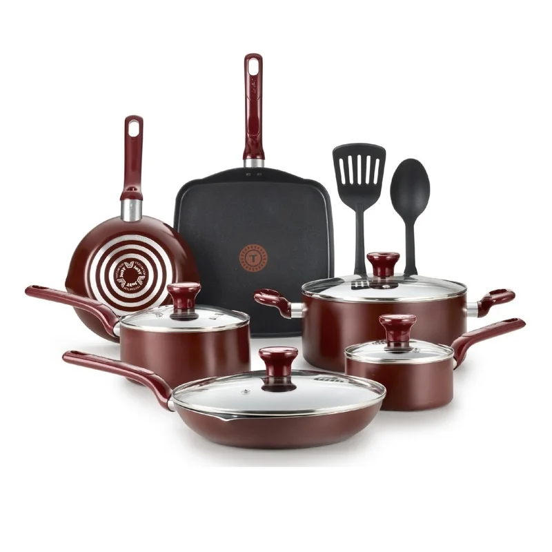 Cooking and cleaning made easy with Easy Care 12-Piece Non-stick Cookware Set, ensuring reliable results when preparing meals for the whole family. Includes 8" frypan, 10. 25" frypan with lid, 10. 25" griddle, 1QT saucepan with lid, 2QT saucepan with lid, 5QT stewpot with lid, spatula, and spoon. Pro-Glide non-stick interior ensures easy food release and enables healthy cooking with little to no oil. Thermo-Spot heat indicator shows when pots and pans are perfectly preheated to start cooking, and the even heat base allows for no hot spots. Features comfortable handles and vented tempered glass lids.