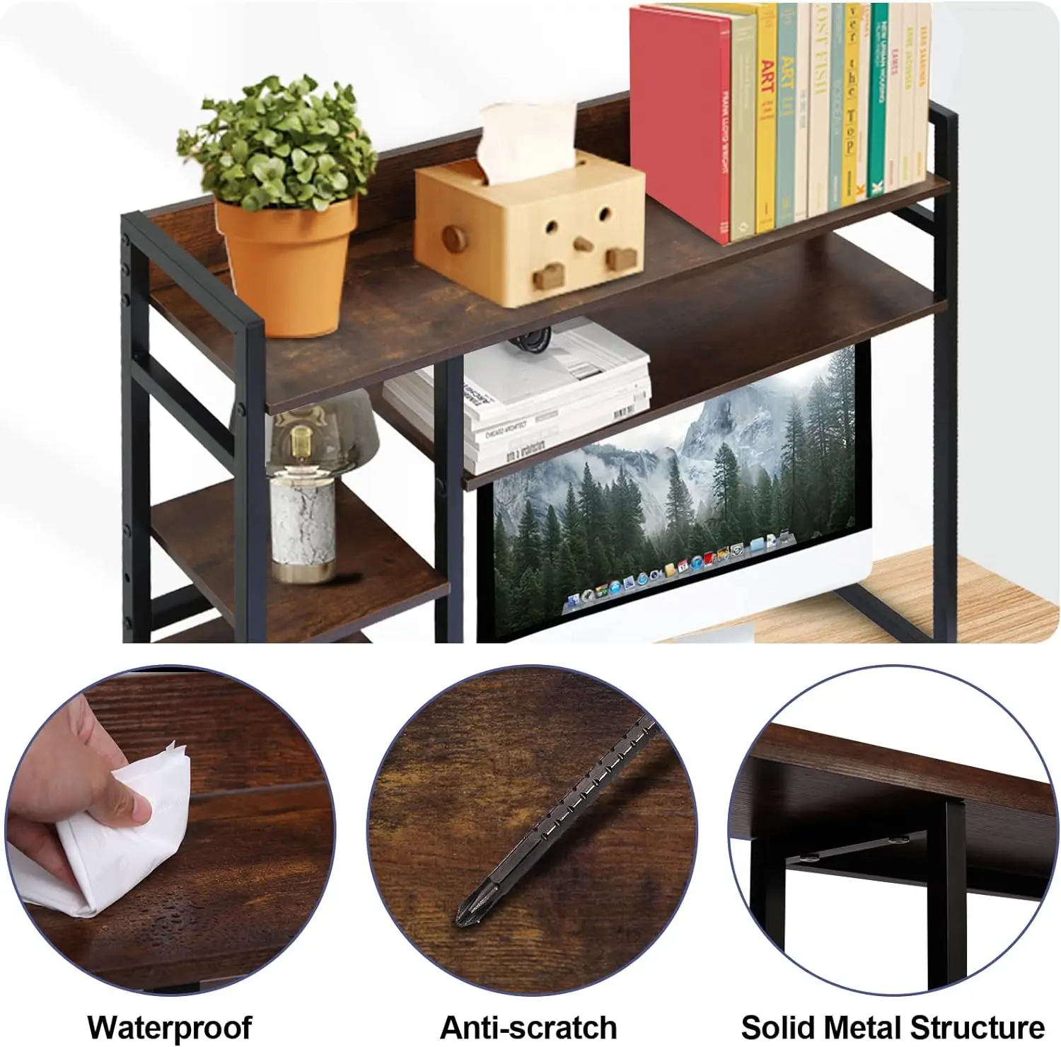 Desktop Bookshelf, 2-Tier Multipurpose Wood Bookcase for Computer Desk,