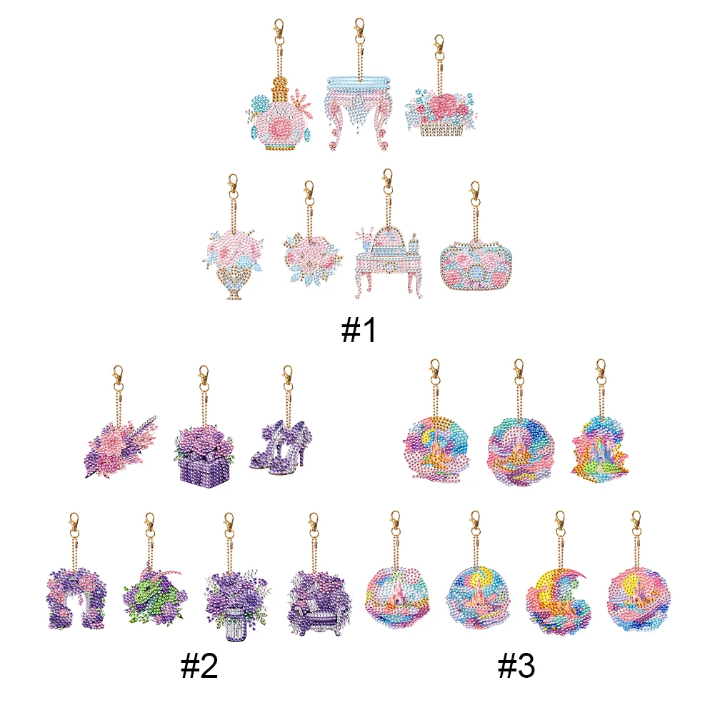 Features: 1.Creative DIY Painting: Our diamond painting art keychain pendants offer a unique and creative DIY experience. Express your artistic side by creating stunning designs using our resin-based glossy paints. Unleash your creativity and enjoy the satisfaction of completing a personalized masterpiece. 2.Dazzling Resin Shimmer: The resin shimmer in our rhinestone painting keychains pendant adds a mesmerizing touch to your artwork. With its unique and radiant gloss, these keychains sparkle and shine under any lighting conditions. Stand out from the crowd with the dazzling beauty of our popular DIY decorative accessories. 3.Popular DIY Decoration: DIY diamond painting keychain is currently one of the most beloved trends in the crafting community. Join the millions of enthusiasts who enjoy the soothing and rewarding process of creating their own personalized decorations. Our diamond painting keychains are a must-have for anyone seeking a trendy and enjoyable DIY project. 4.Versatile Use: Our diamond art keyrings are not only decorative but also practical. Attach them to your keys, bags, backpacks, or even use them as stylish zipper pulls. These versatile accessories add a touch of personalization and elegance to your everyday items while showcasing your artistic flair. 5.High-Quality Materials: We take pride in providing high-quality materials for our full drill keyrings. From the sturdy keychain base to the vibrant resin paints, every component is carefully selected to ensure durability and longevity. Enjoy the satisfaction of a well-crafted product that will last for years to come. Specification: Origin: Mainland China Style: Modern Style Material: Plastic Product Size: 80.00x75.00x10.00mm/3.15x2.95x0.39inch Main Material: Keychain + Shaped Shiny Diamonds Type (Optional): Everyday Things/Wedding Things/Fantasy Star Castle Size: each about 8.0x7.5cm/3.15x2.95inch DIY diamond painting making steps: 1. Open the box, check the diamond painting special tools 2. Check the resin diamond colour, arrange them in coded order 3. Uncover the tape diagram above, you will see many symbols corresponding to the colour code 4. According to the corresponding colour code fixture corresponding resin diamonds inlay 5. It is recommended that a set of resin diamonds be completed more quickly 6. In order to make a perfect diamond drawing, put the pattern in one place, each line of symbols do not have to leave diamonds 7. To cut a good pattern on the drawing, please mount the sorting array on the flat surface of the above material 8. Piecing needs to be flat, neat and without cracks 9. After a good scrabble, the rest of the glue gap conforms to the diamond symbols Attention: This is DIY diamond painting keychain, not finished, you need to finish it by yourself.