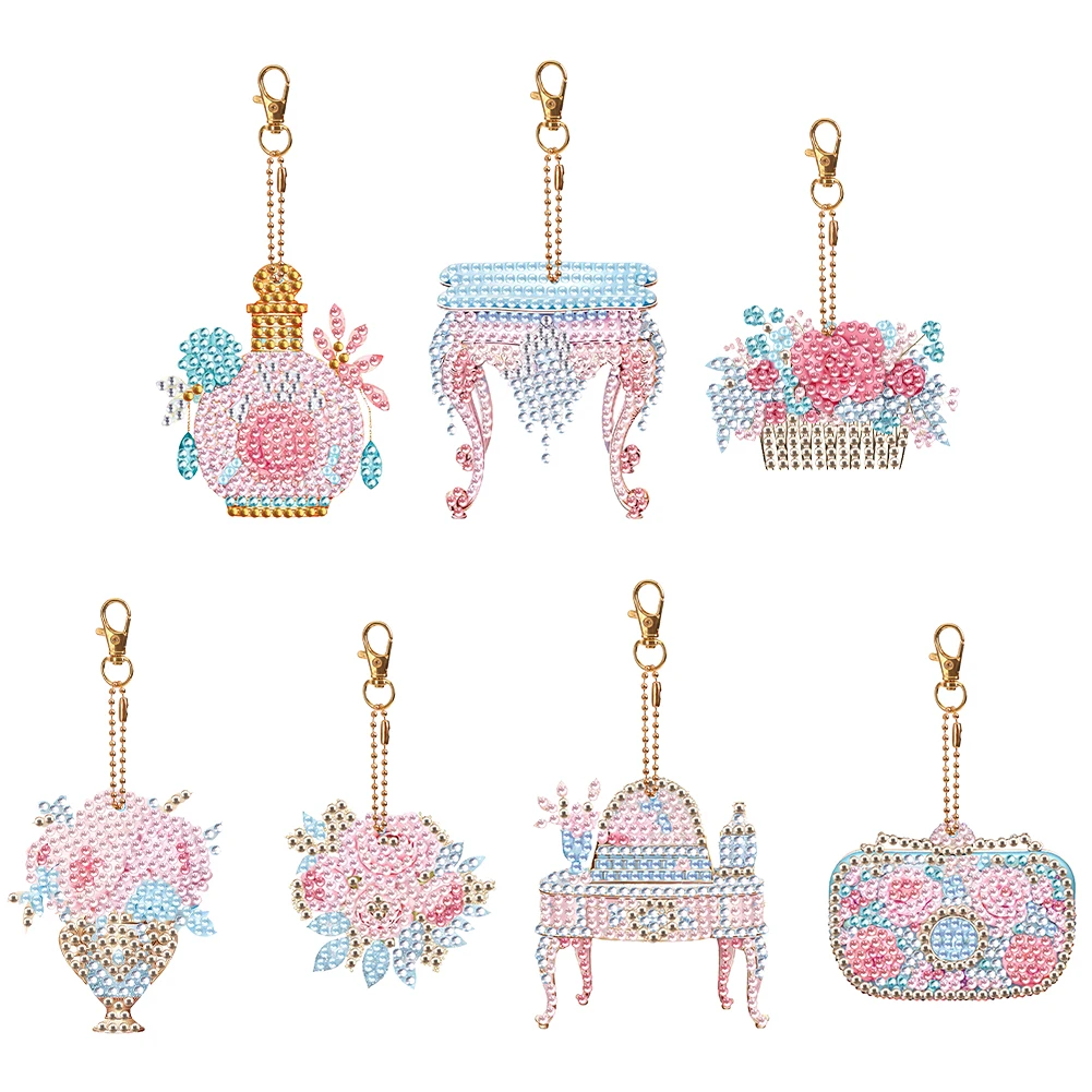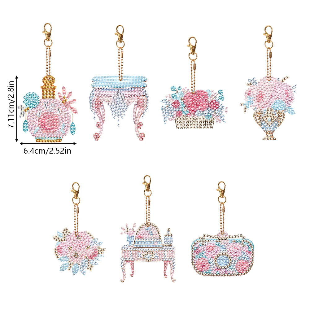 7PCS Diamond Art Keyring Everyday Things Double Sided Diamond Painting Keychain Wedding Things Rhinestone Painting Keychain Pendant Fantasy Star Castle for Beginners Birthday Crafting Home Party Decor