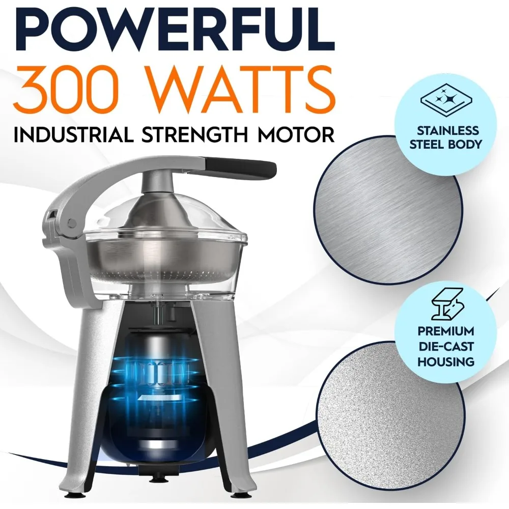 Die Cast Stainless Steel Electric Citrus Juicer Squeezer, for Orange, Lemon, Grapefruit | 300 Watts of Power