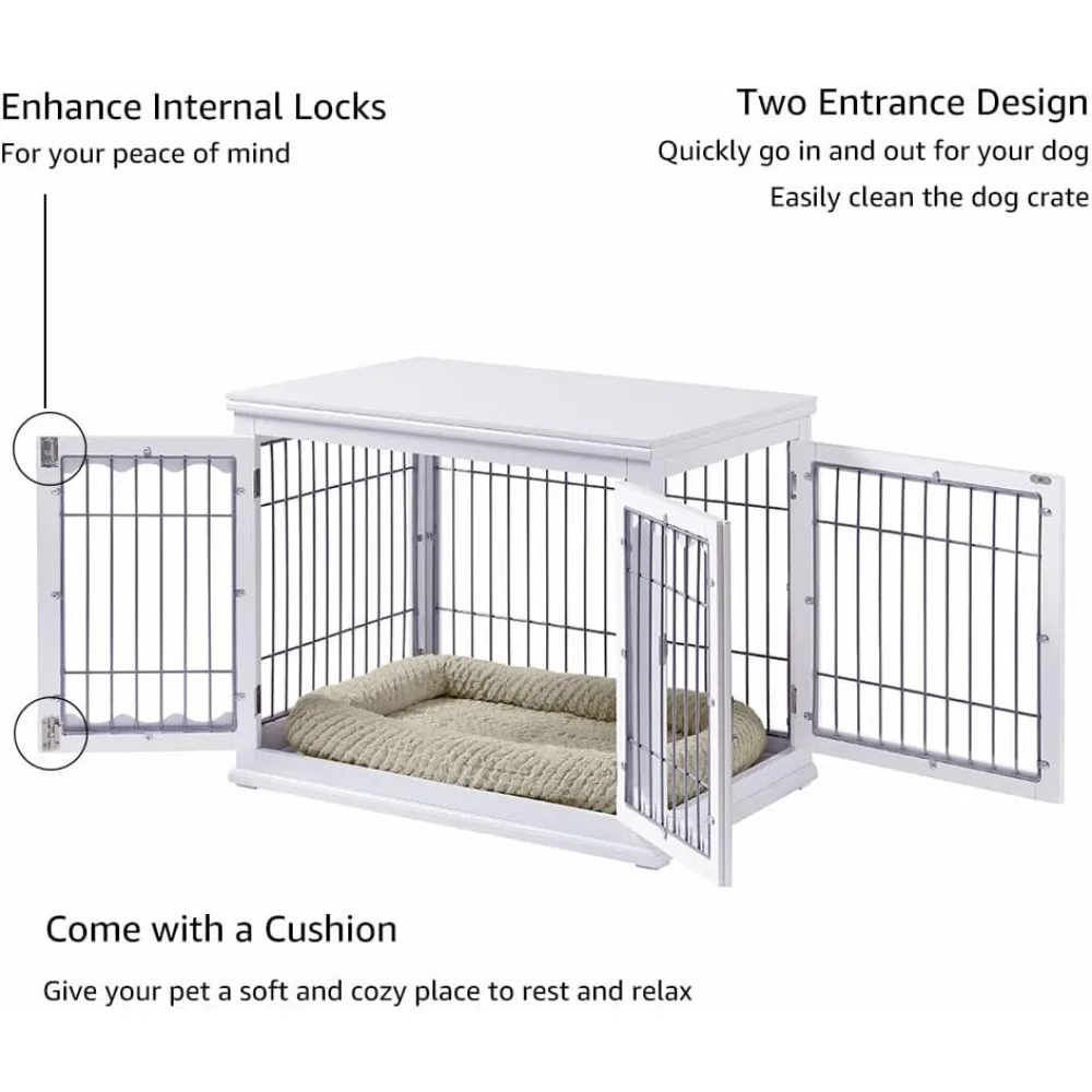 - BONUS FEATURES: 1) Come with a soft pet bed to create a comfortable place for your dog to rest; 2) Two entrance design for easy accessibility and cleaning; 3) External and internal 3 locks to prevent your dog from escaping.