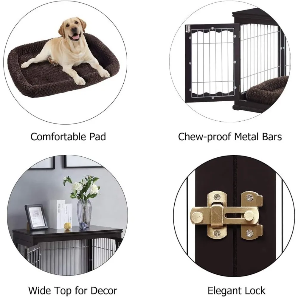 - BUY A SIDE END TABLE FOR YOURSELF: Use the dog crate as a side end table or nightstand for a cozy life. Place decorations, plants, magazines, books or a cup of coffee on the spacious top. Have leisure time with your furry pet. The maximum support weight of the top is 200 lbs.