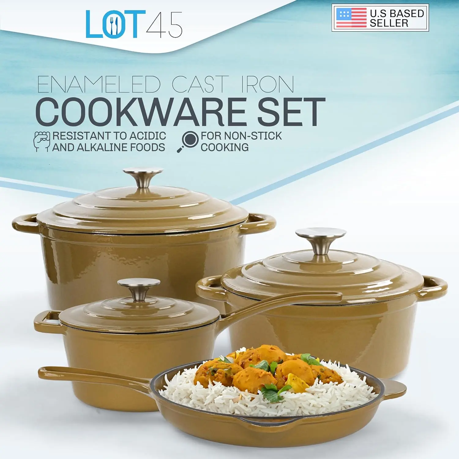 - [A Pan for Every Meal]: Fry up some eggs or slow cook some soup with the Lot45 Cast Iron Enameled Cookware for non-stick cooking resistant to acidic and alkaline foods