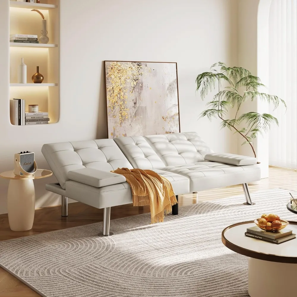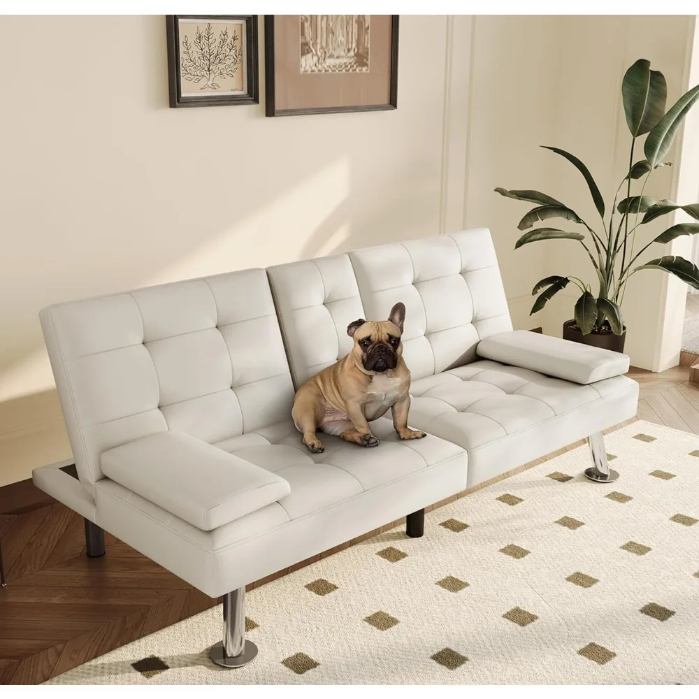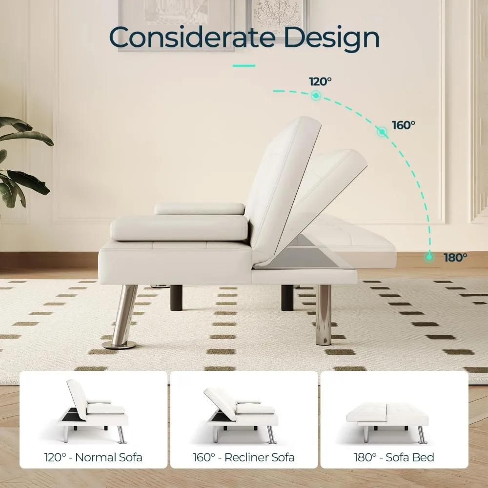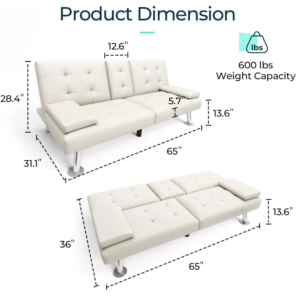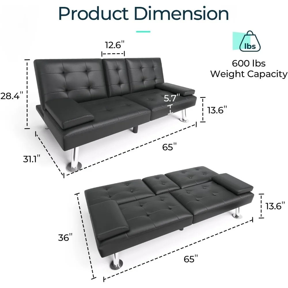 - 【Quality Craftsmanship】 - Crafted with precision, this futon features a sturdy wooden frame, high-resilience foam, chrome-plated metal legs that can support up to an impressive 600 pounds of weight. The premium faux leather upholstery is not only pet-friendly but also waterproof and stain-resistant, making it a breeze to clean and maintain