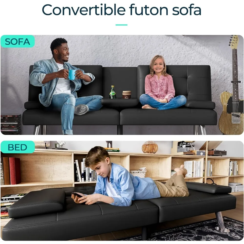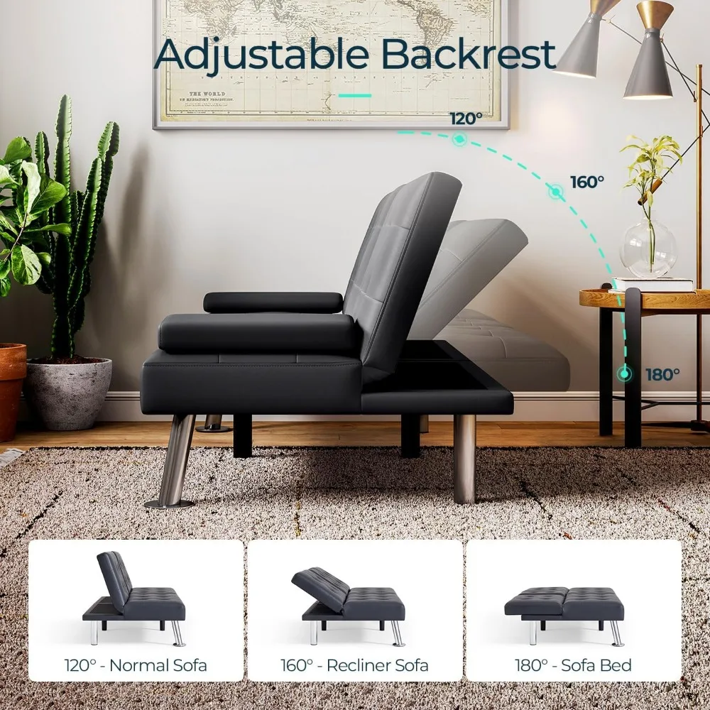 - 【Multi-Purpose Marvel】 - Whether you need a sofa, loveseat, sleeper sofa bed, or recliner, our black faux leather futon is the perfect choice. It seamlessly transitions from a comfortable sofa to a cozy bed, making it a space-saving superstar