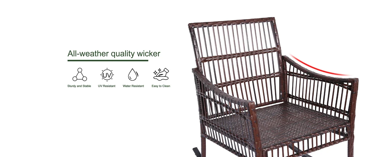 1 Safe Rocking Design 2 Strong Load-bearing 3 Square Shape Table Top 4 All-weather Wicker