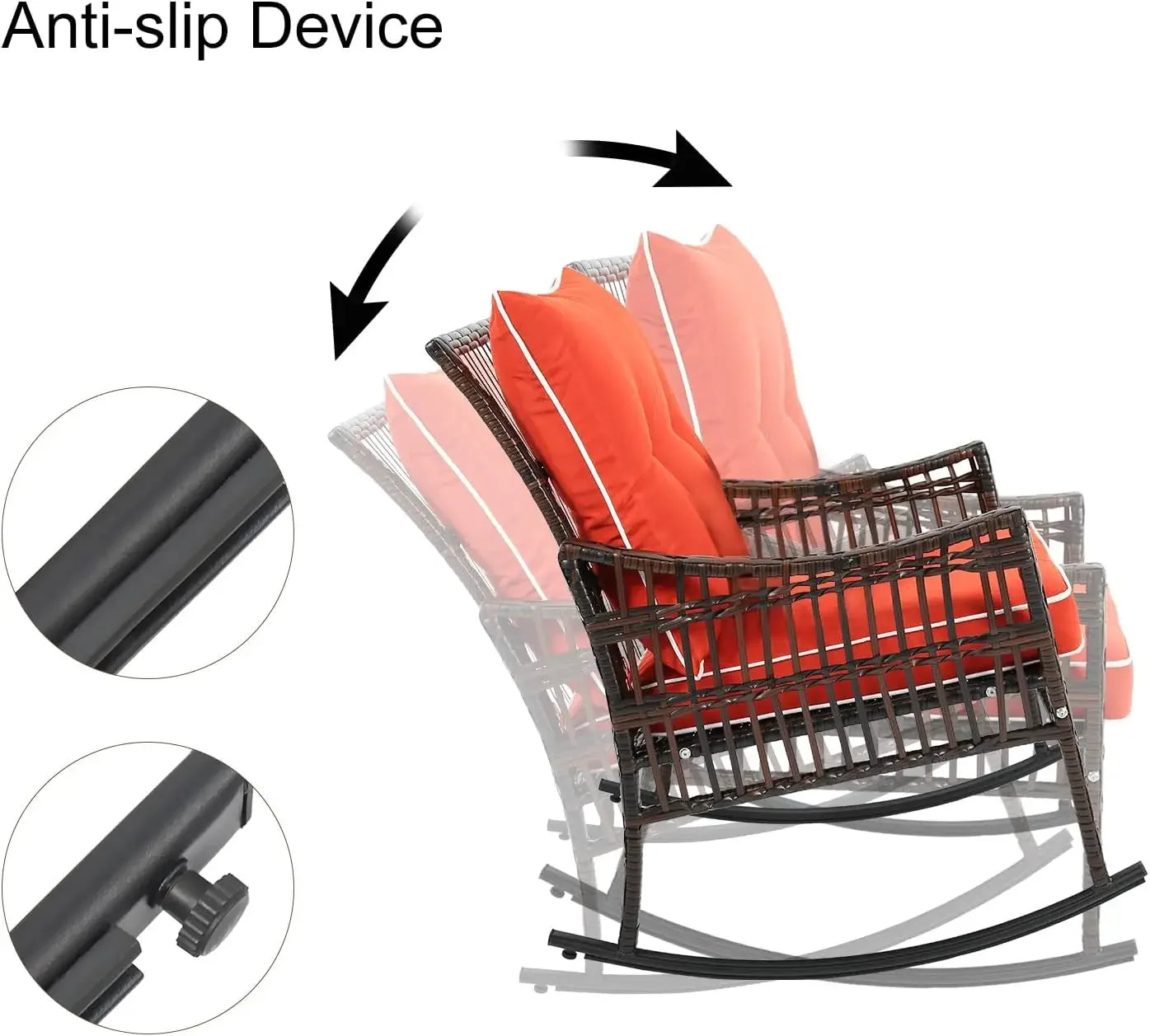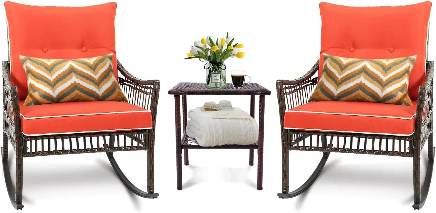Furniture Set, Outdoor Rocking Chairs Set of 2, Patio Conversation Set with 2 Wicker Chairs with Coffee Table and
