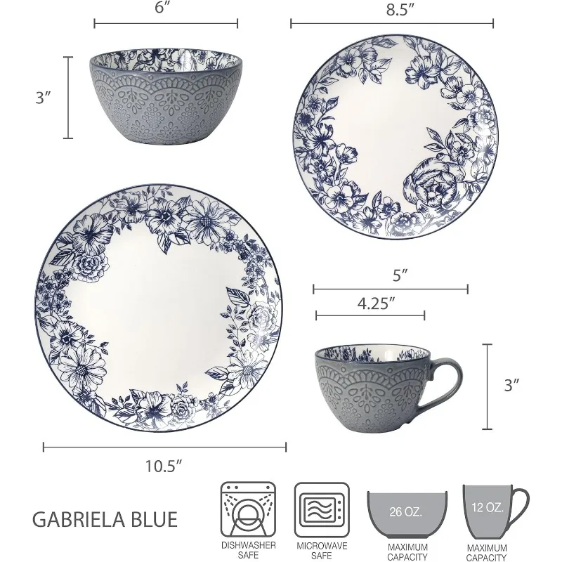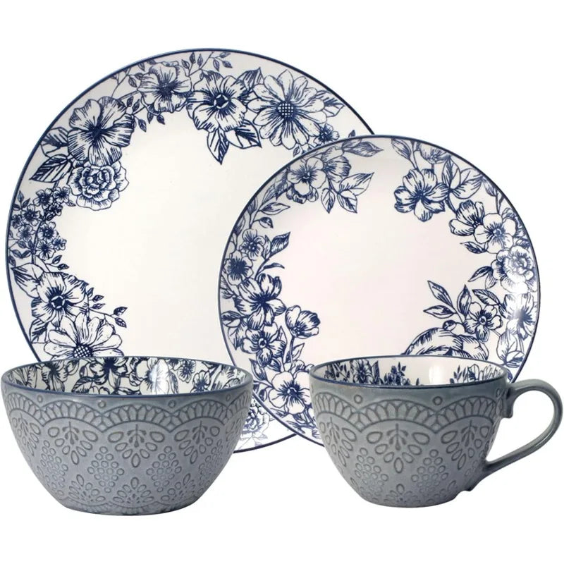 Gabriela Blue 16-Piece Dinnerware Set, Service for 4