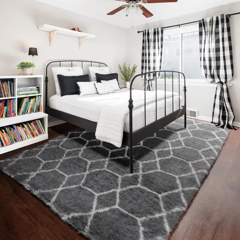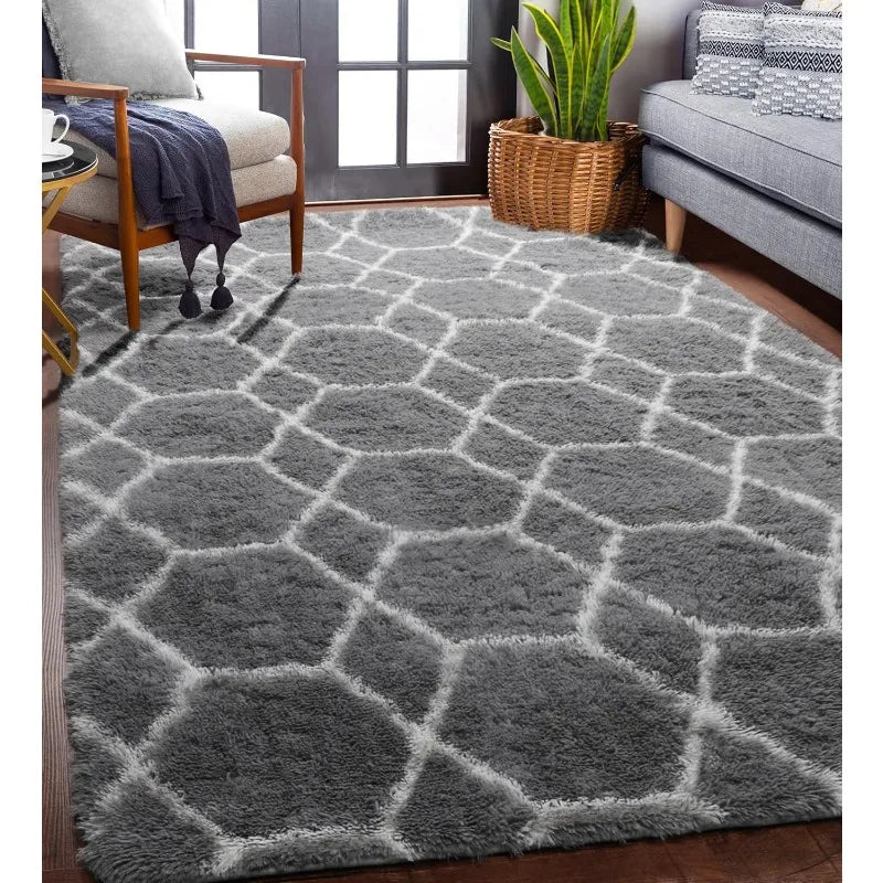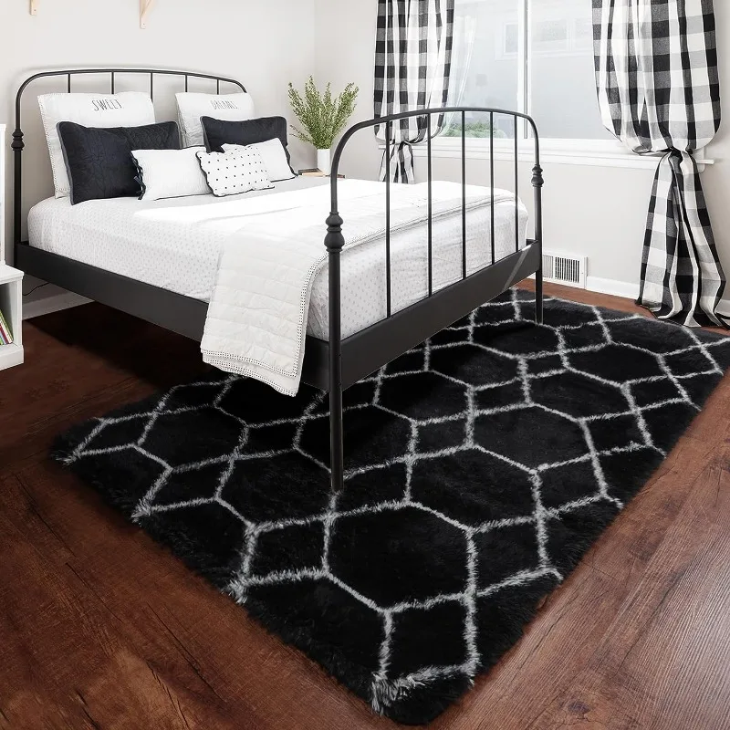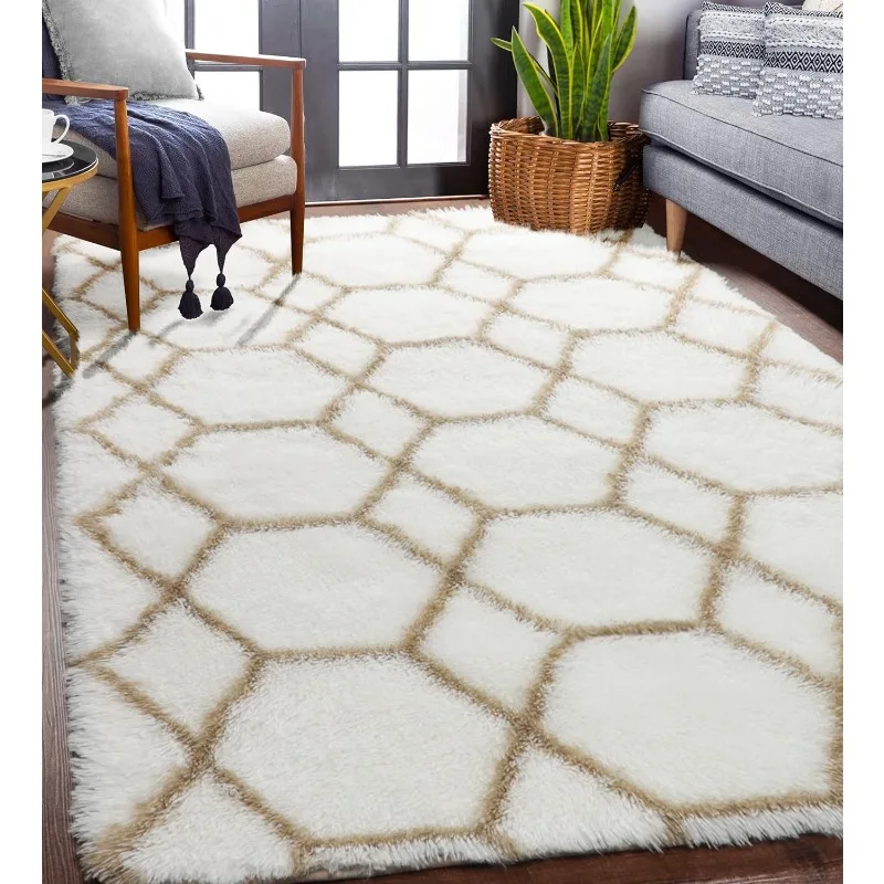 - [Modern Home Decor]: Decorate your home with the stylish and luxurious geometric rug, and enjoy the comfort and elegance the fur rug provides whether in your living room or bedroom. Show off your impeccable taste with this plush living room rug. It's perfect for the living room, bedroom, dorm room, classroom, nursery, children's room, girl's room, baby's room, playroom.