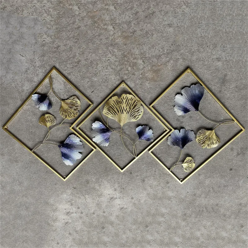 Ginkgo Biloba Design 3D Wall Decoration Modern Metal Art Sculpture Home Garden Hanging Decor Aesthetic