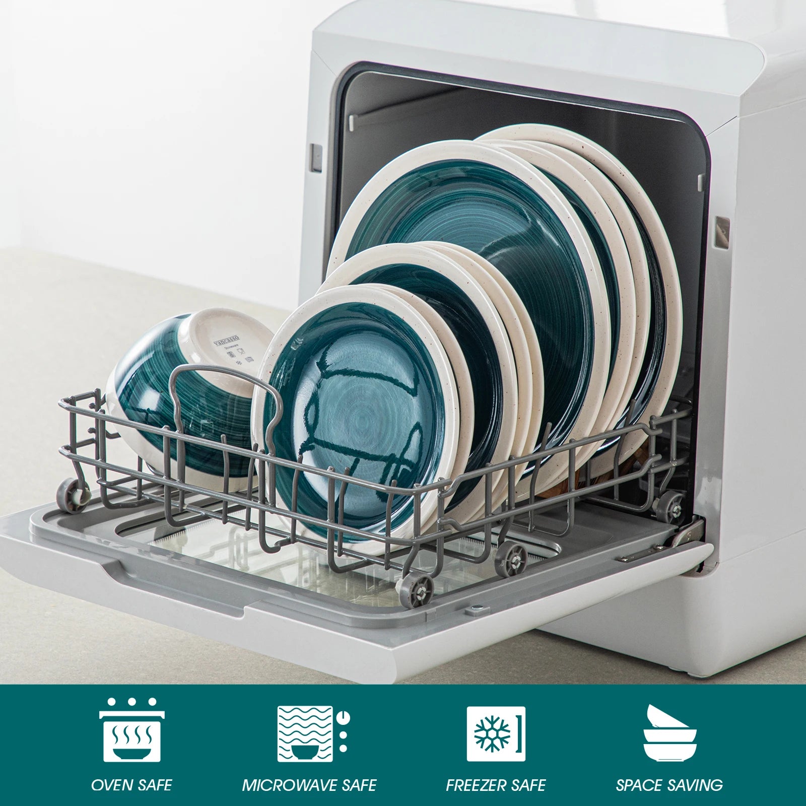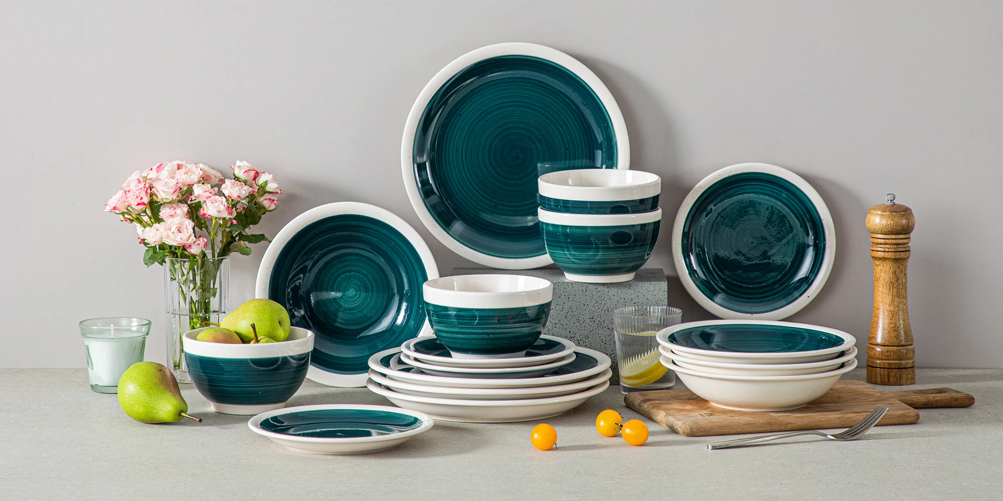 Green Color Stoneware Tableware Set with Dinner/Dessert Plate Cereal/Pasta Bowl