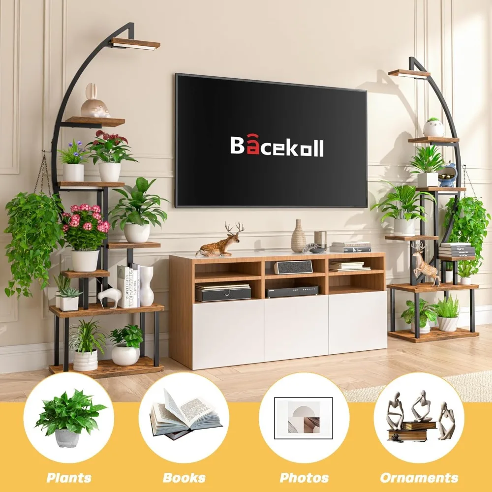 - 【Great Gift for Plant Lovers】 Designed with a curved shape like the half-moon, this floor plant stand with light (includes two shelves) is a unique and artistic addition to your home beauty. You can place it in your living room, bedroom, porch, balcony, etc. And place many decorations, not just plants. It is also a creative indoor garden gift for yourself, your family or friends.