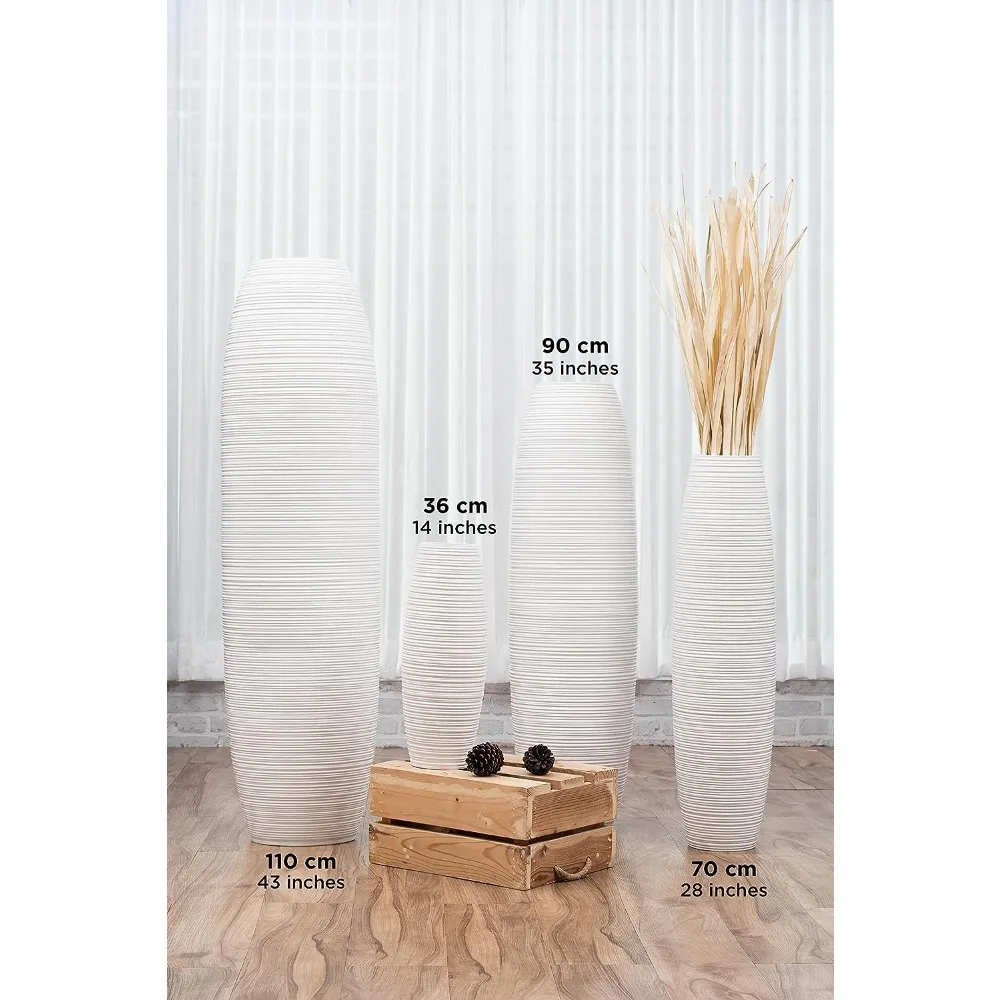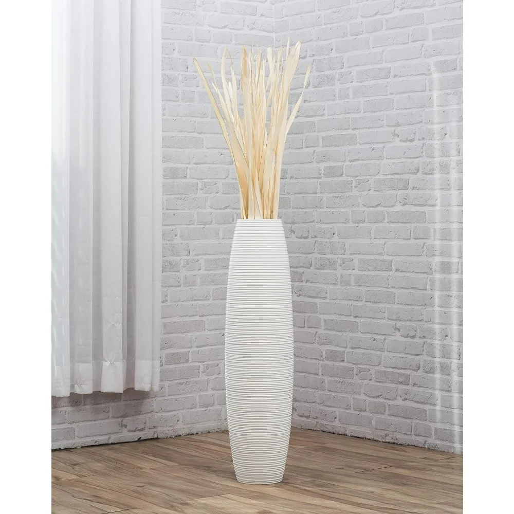 The decorative vases consist of natural materials. All decoration accessories impress with their premium quality. Branches, bundles of grass, and decorative dried flowers shine to their best advantage in the vases. Due to their attractive design, the standing vases mix well with many styles.