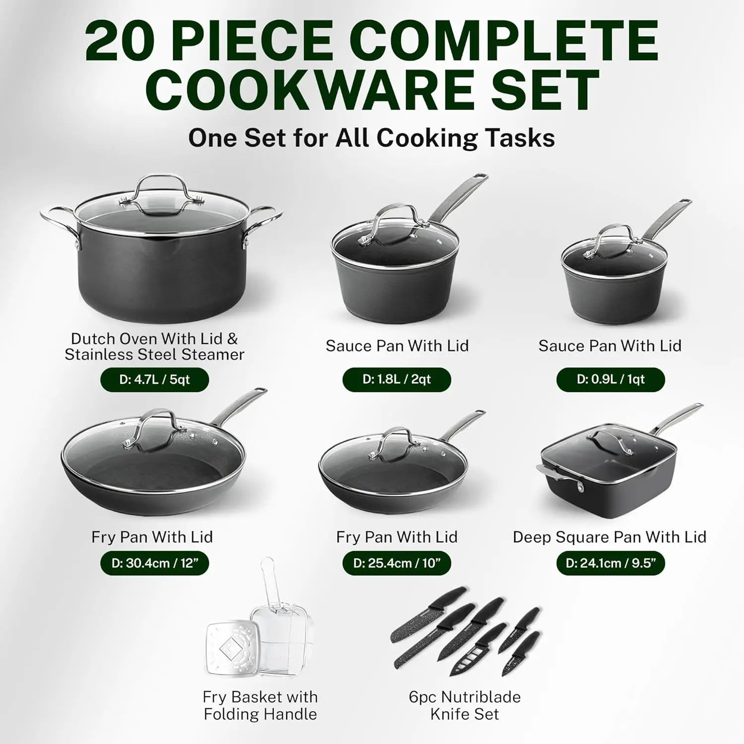 - HEALTH AND SAFETY 1ST: Each Piece of cookware is made without PFOA, PFOS & other harmful chemicals GRANITESTONE Armor Max 20 Pc Induction Cookware Sets, Kitchen Pots and Pans Set Non Stick, Kitchen Cookware Sets, Nonstick Cookware Set, Non Stick Pots and Pan Set, Oven and Dishwasher Safeincluding lead & cadmium, allowing you to Keep a healthy, toxin free, and ecofriendly cooking environment.