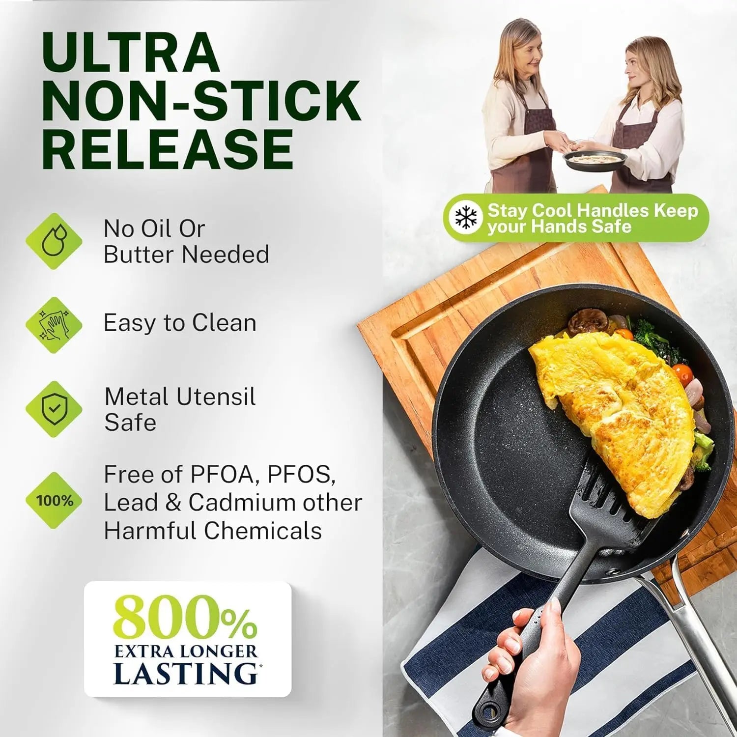 - PROFESSIONAL GRADE HANDLES: Granitestone Armor Max’s stainless steel riveted stay cool handles are ergonomically designed for a safe, easy, and comfortable grip both righties and lefties can enjoy while cooking.