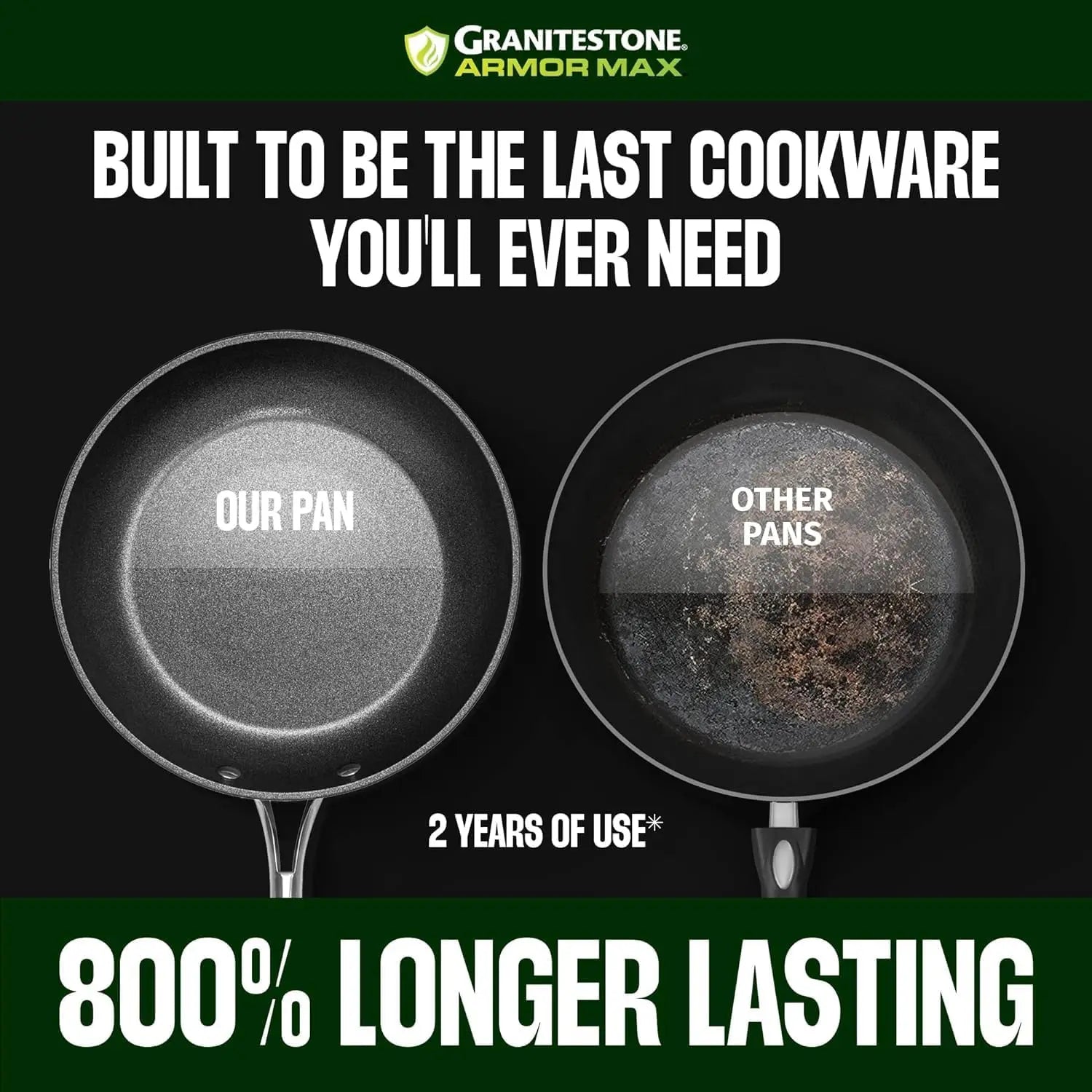 - BUILT TO LAST YEARS: Granitestone Armor Max is constructed from heavy duty, forged, hard anodized aluminum stronger than stainless steel, ensuring your nonstick cookware lasts for years on end.