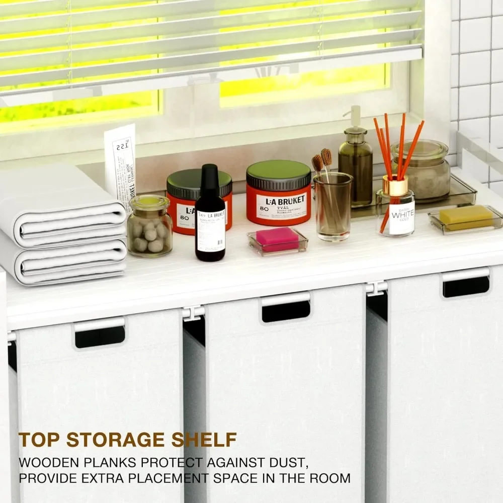 - 【With Shelf & 3 Section】Our laundry hamper with shelf to add extra storage space while keeping out dust and odors, and the laundry hamper 3 section divider design allows you to separate dark and light colored clothing to prevent unwanted stains.