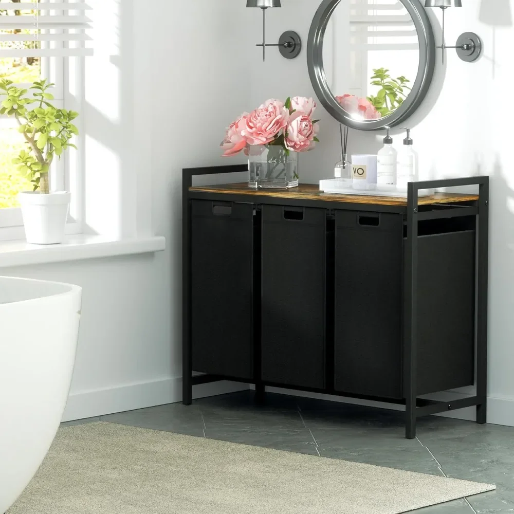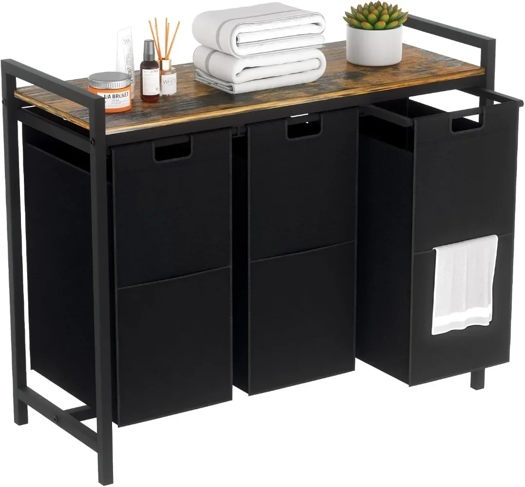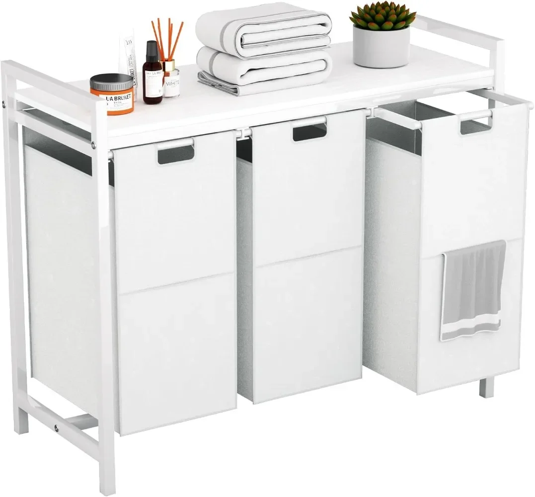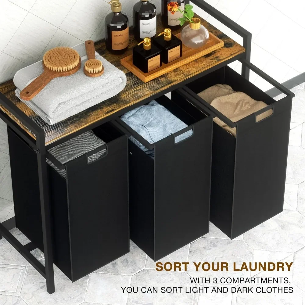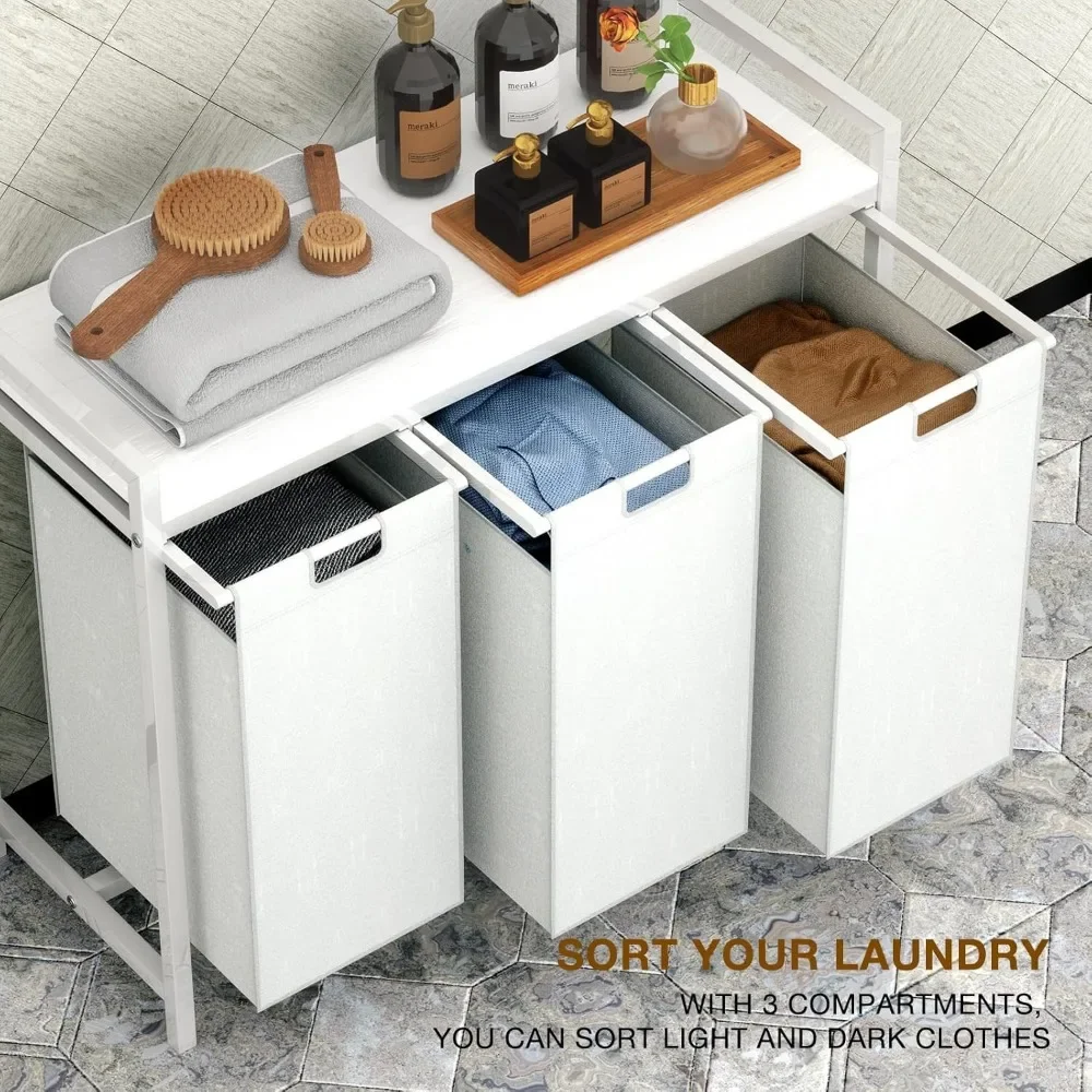 Laundry Hamper 3 Section with Shelf with 3 Removable Laundry Sorter Bags