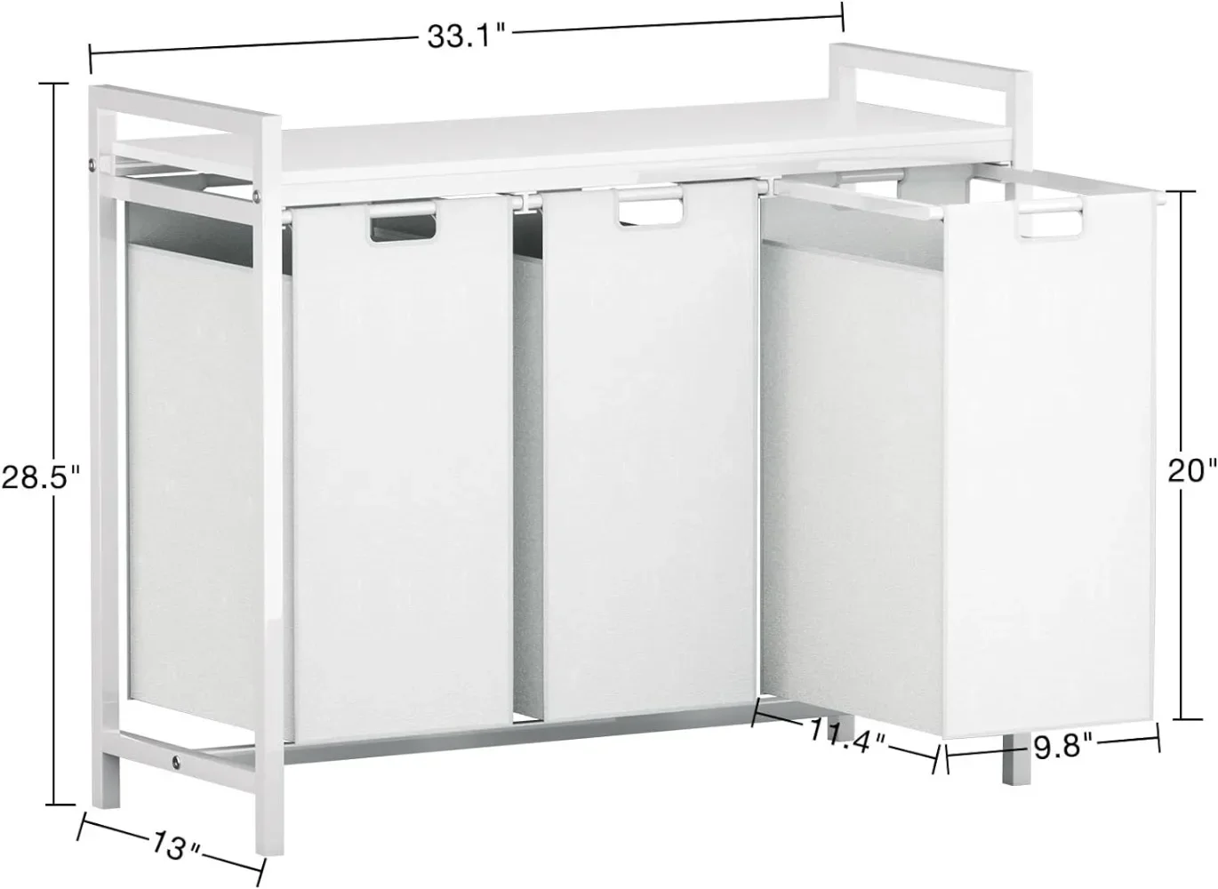 - 【Large Capacity】The total capacity of this laundry basket is 111L, which can hold up to 18 T-shirts + 12 pants, which is enough for the whole family to use together, and laundry sorter dimensions are 33.1 "L x 13 "W x 28.5 "H, which won't take up too much space in the room.