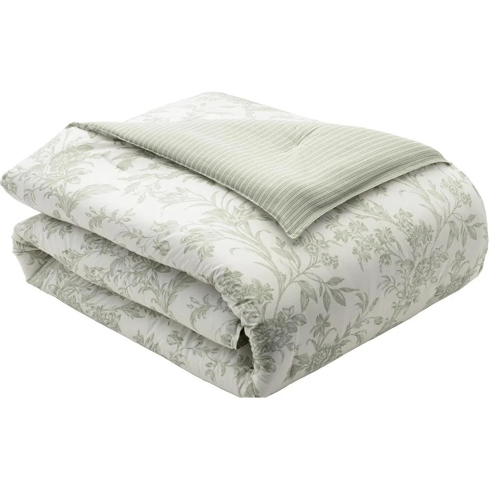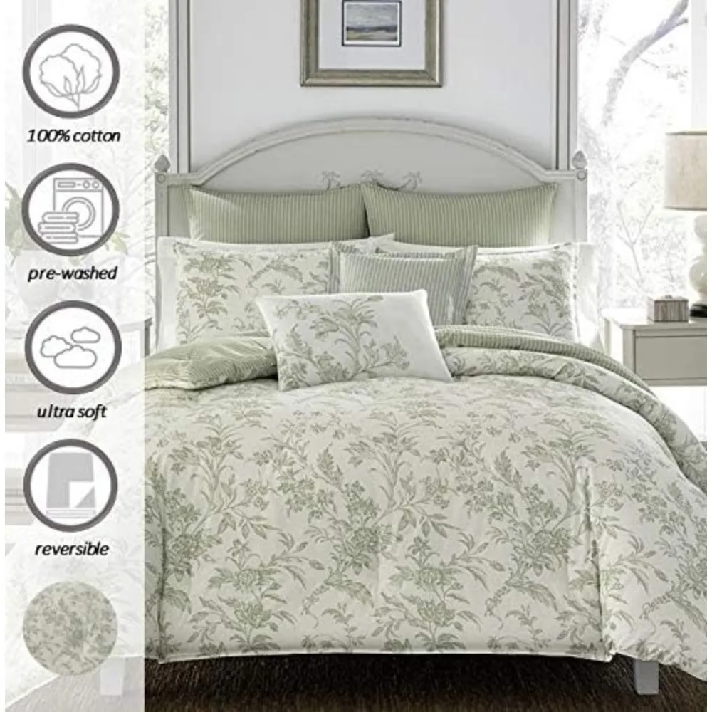 Laura Ashley Home - King Size Comforter Set, Reversible Cotton Bedding, Includes Matching Shams with Bonus Euro Shams & Throw