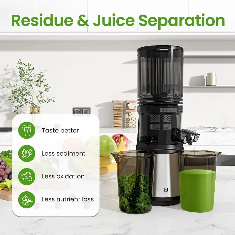 - 【Residue Separation】With the slow cold-press technology will not destroy the cell wall of the juice, resulting in more nutrients and less sediment. It allows for the extraction of fresher juice with higher nutritional content.