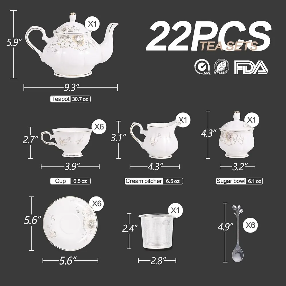 - The tea cup and saucer gap is an ideal gift - the gorgeous 22 piece tea set with a beautiful gift box makes it always the best gift for friends, family, tea or coffee lovers, whether it's a wedding, birthday, family reunion, or other gathering.