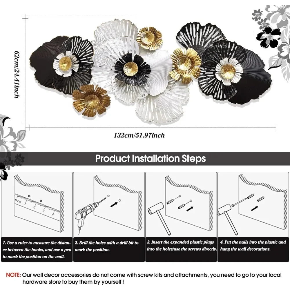 - WIDELY APPLICATION: This metal wall art is a dimensional blooming flower with a bright and vibrant White. The metal flower wall art will add a splash of color for Bathroom Patio Fence Garden Bedroom Living Room, and more.