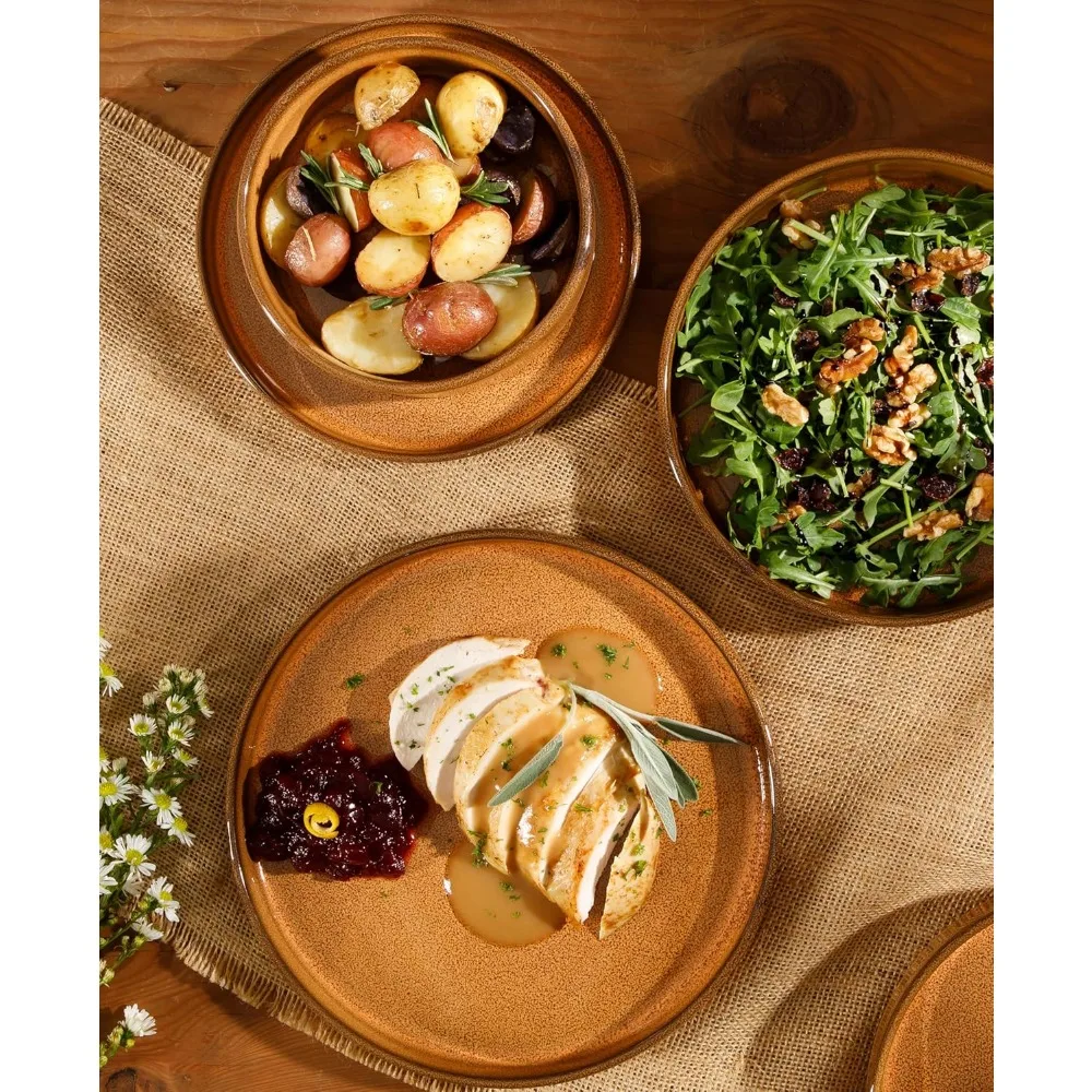 Oprah's Favorite Things - Santorini Mist Double Bowl Terracotta Reactive Glaze Plates and Bowls Dinnerware Set - Amber