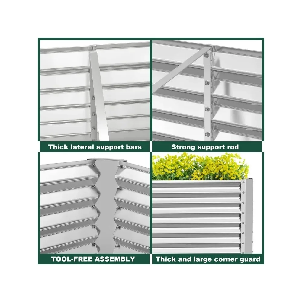 - 【Durable Galvanized Steel Planter Box】: The planter raised beds with anti-rust coating allow to expose to sun, rain, snow and so on for a long time. Thickened steel and reinforced corners that allows it to support the weight of the garden bed itself, soil and plants.