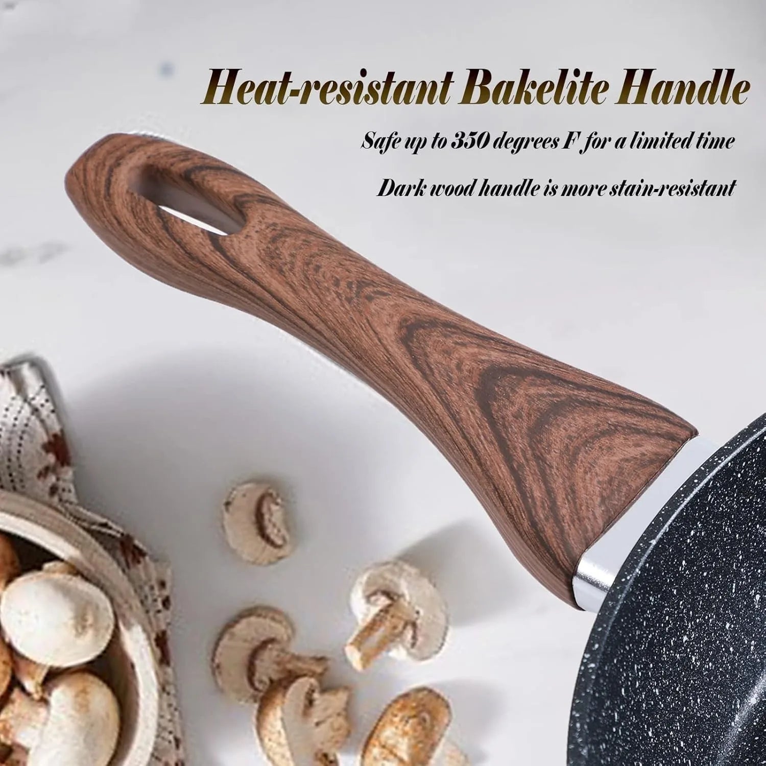 • ๐‘ฎ๐’“๐’‚๐’๐’Š๐’•๐’† ๐‘ช๐’๐’๐’Œ๐’˜๐’‚๐’“๐’† ๐‘บ๐’†๐’•๐’”: When it comes to the interior, this cookware uses an aluminum core. The result is that the pan heats up quickly, and more importantly, distributes heat evenly. The cookware set works on all major types of cooktops, even induction. Sear meat, braise, or even use it as a wok for frying rice
