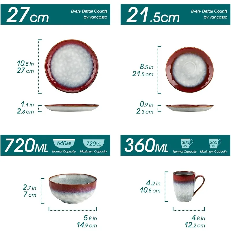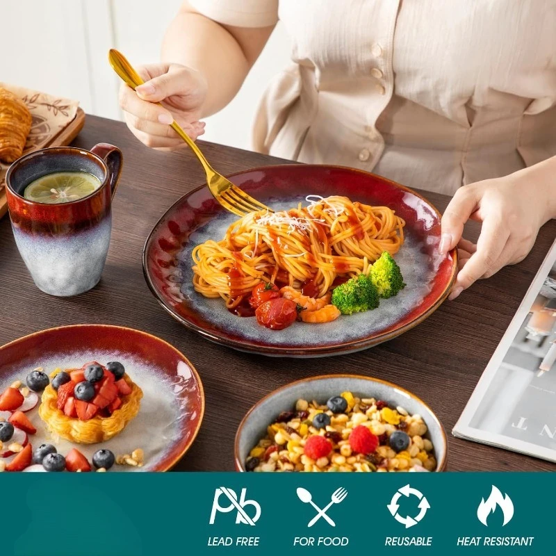 - 【Elegant Red Color with Depth】The rich red tones of this set bring warmth and sophistication to your table. The subtle variations in color due to the reactive glaze process add a layer of depth, making each piece truly unique.