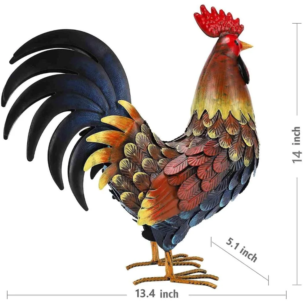 Rooster Decor Garden Statue Metal Chicken Yard Art Sculpture Outdoors Decoration Home