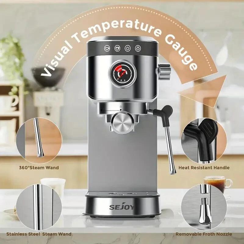 SEJOY Semi-Automatic Espresso Machines, Professional Espresso Machine with Milk Foam, Stainless Steel Expressions Machine