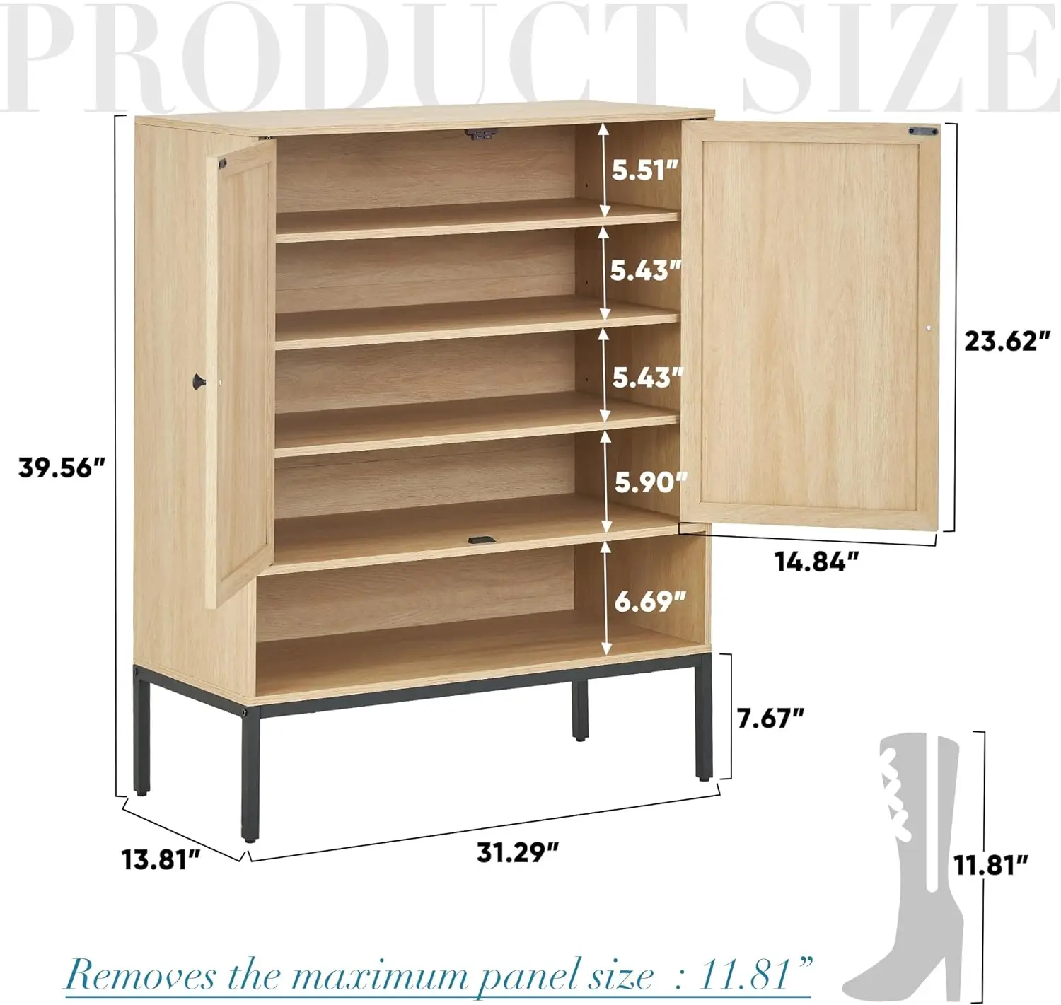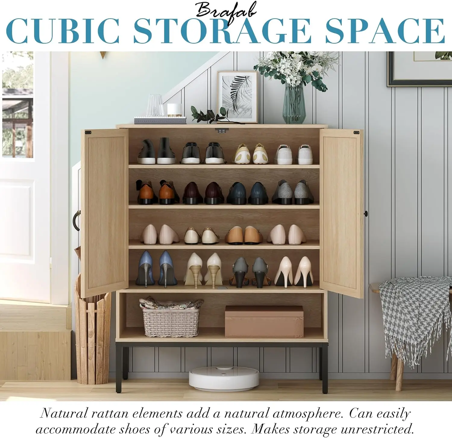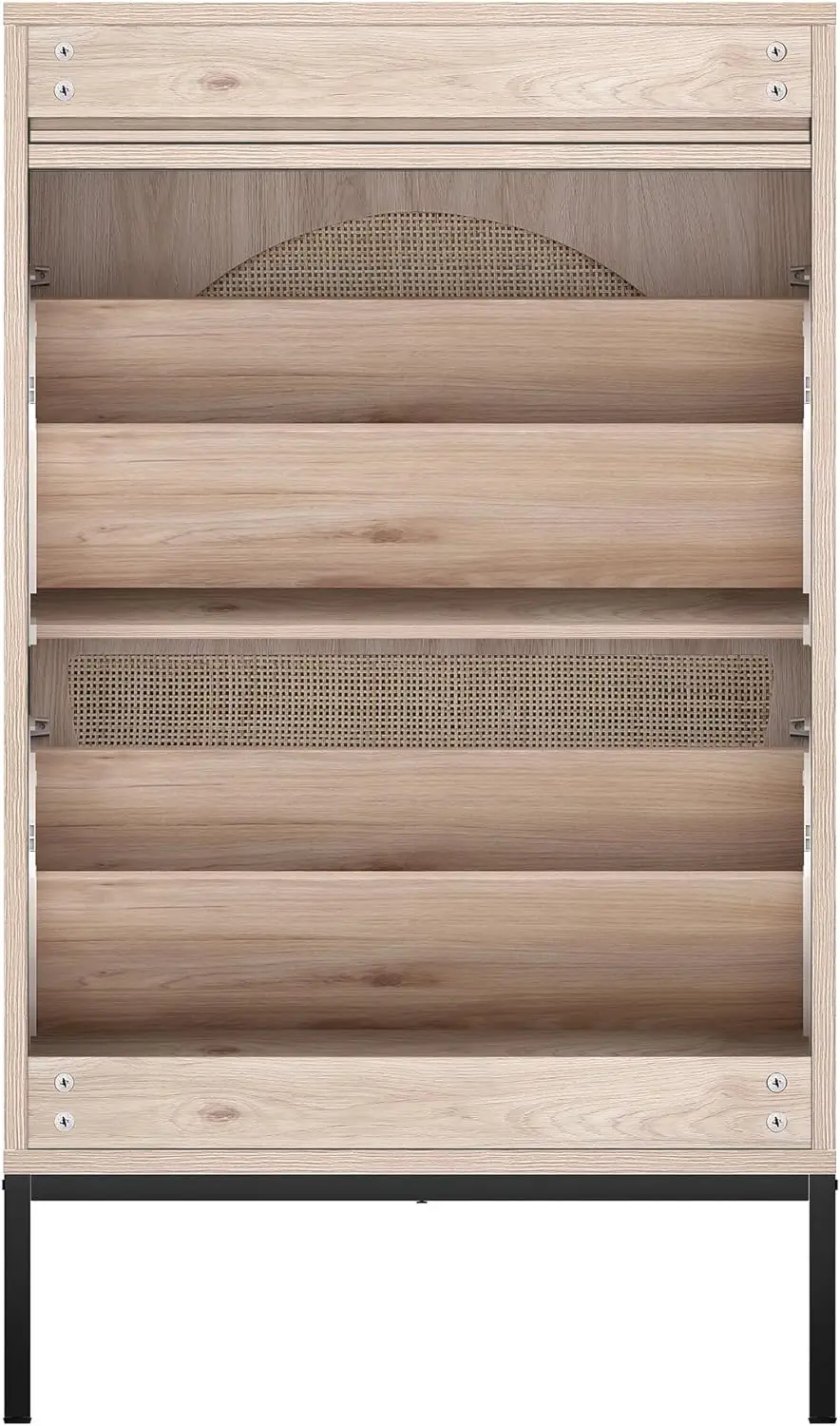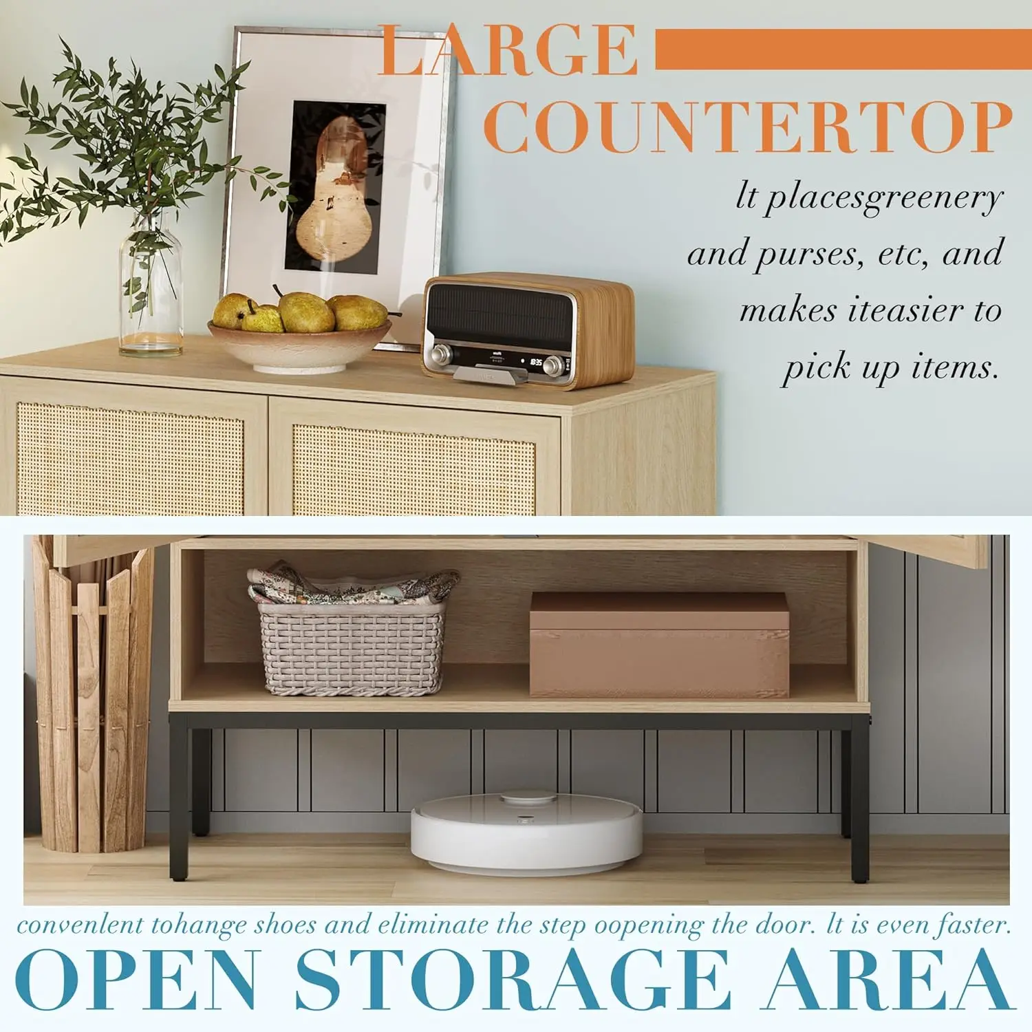 - 【Close to Modern Life】: The rattan surface is designed with a more natural ambience than a traditionally constructed shoe cabinet. Featuring a 7.08" height bottom space and height-adjustable foot knobs, it not only stores shoes, but also allows cleaning by a sweeper Robot. Suitable for your smart home life.