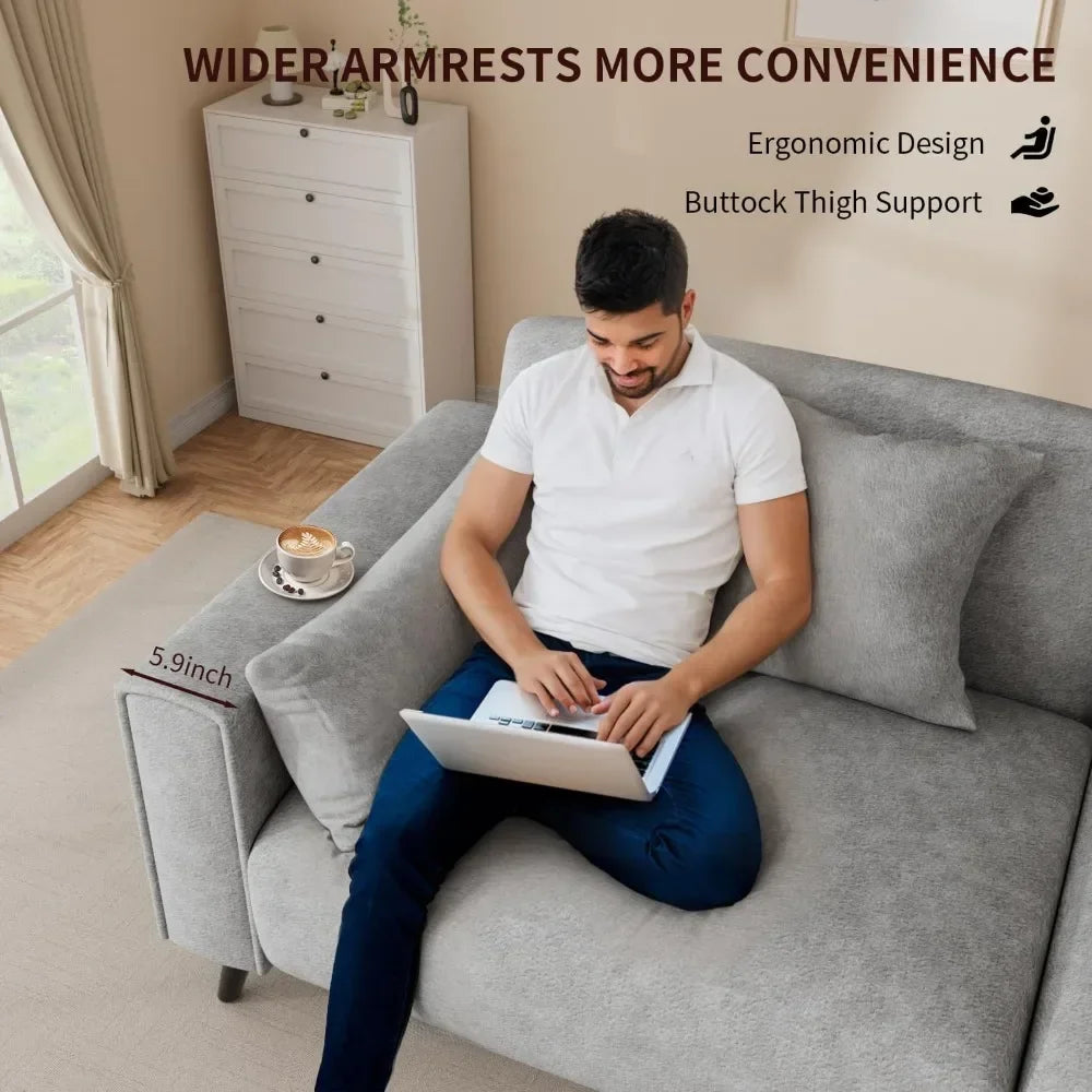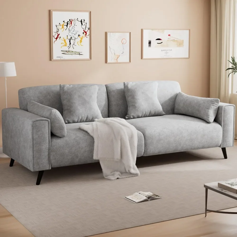 Sofa Couch for Living Room, Modern Comfy Sofa with Extra Depth Seat and 2 Throw Pillow