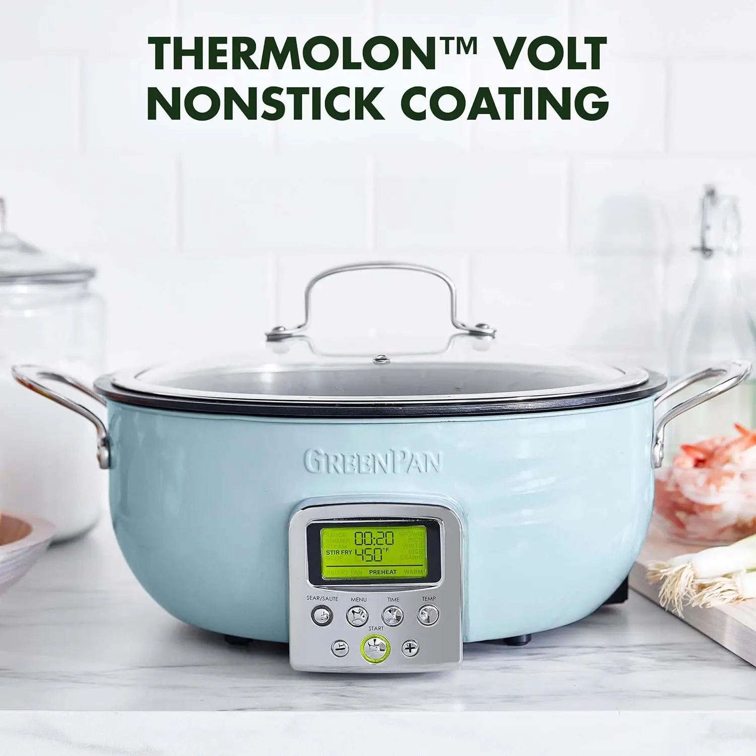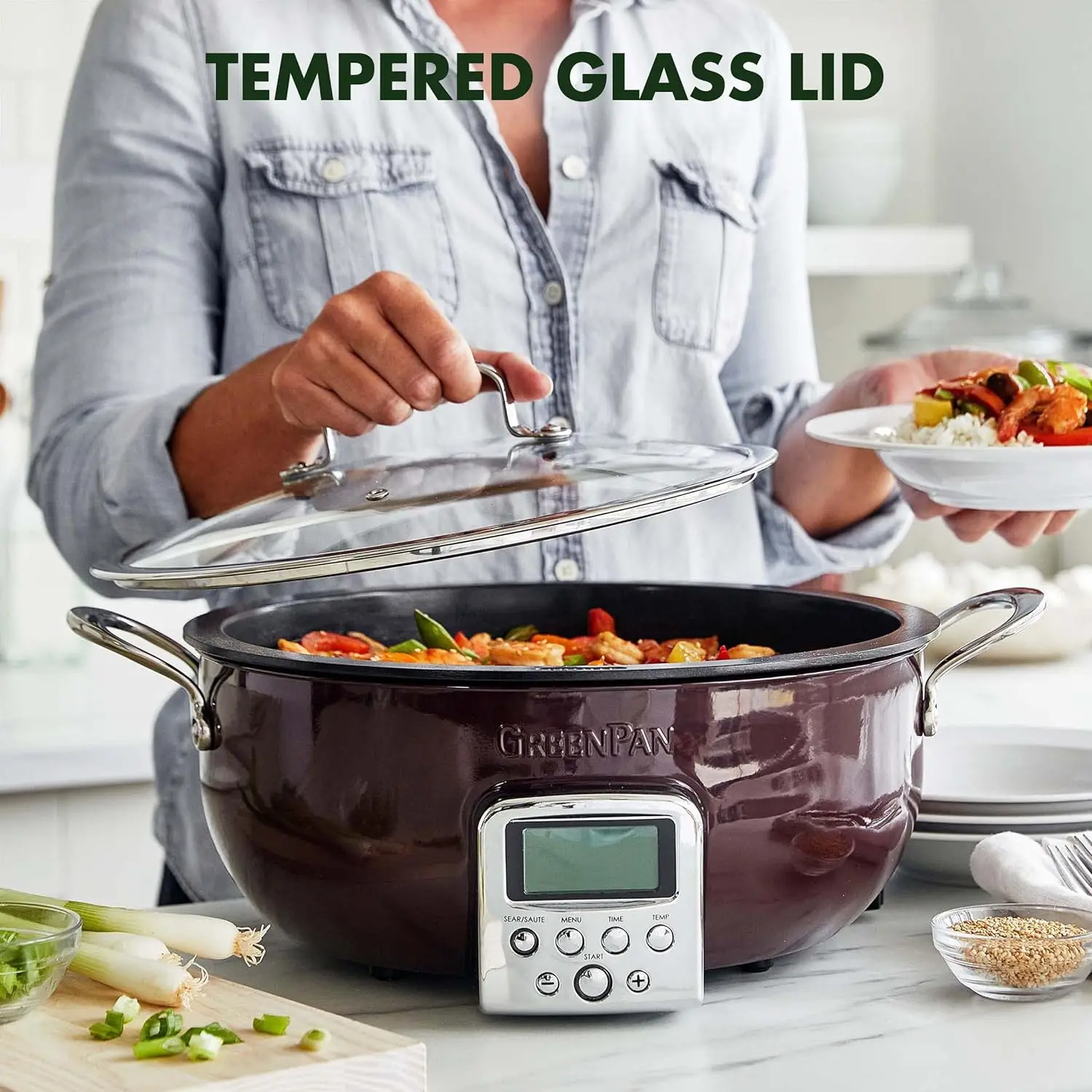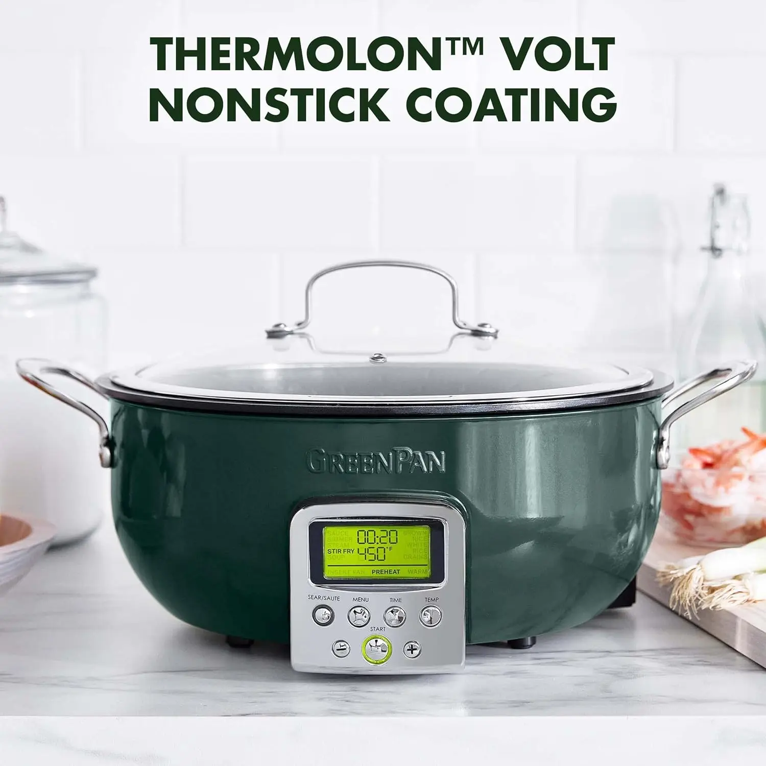 The Elite Essential Smart Skillet is the most versatile tool in any kitchen. Whether you're searing a steak, perfecting a complex stew, or simply making rice, this family-sized 6-quart pan gives you room for any meal. 10 modes to get every meal started right: Stir-Fry, Sauce, Soup, Steam, Simmer, Warm, Sear/Sauté, White Rice, Brown Rice, Grains. The high sides eliminate splatter and make it easy to toss your ingredients without worry. The cast-in element ensures quick and even heating, plus the removable pan pops out and rinses clean. The Essential Smart Skillet features a healthy ceramic nonstick coating specially designed for modern appliances and it's free of PFAS, PFOA, lead, and cadmium.