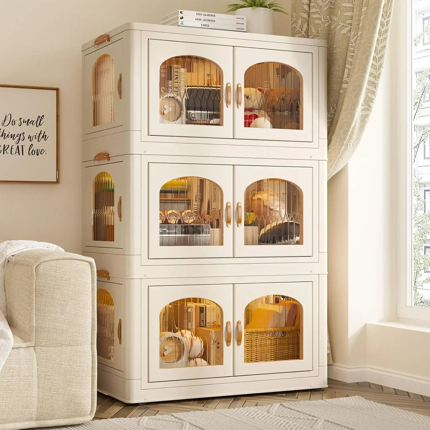 Storage Bins with Lids, Large Stackable Bins with Wheels and Doors, Storage