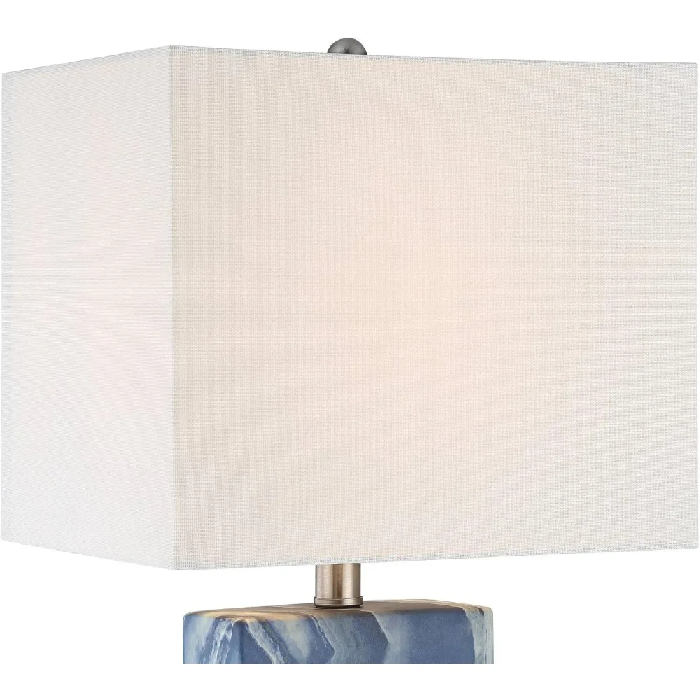 USB Charging Ports Blue Faux Marble White Rectangular Shade for Bedroom